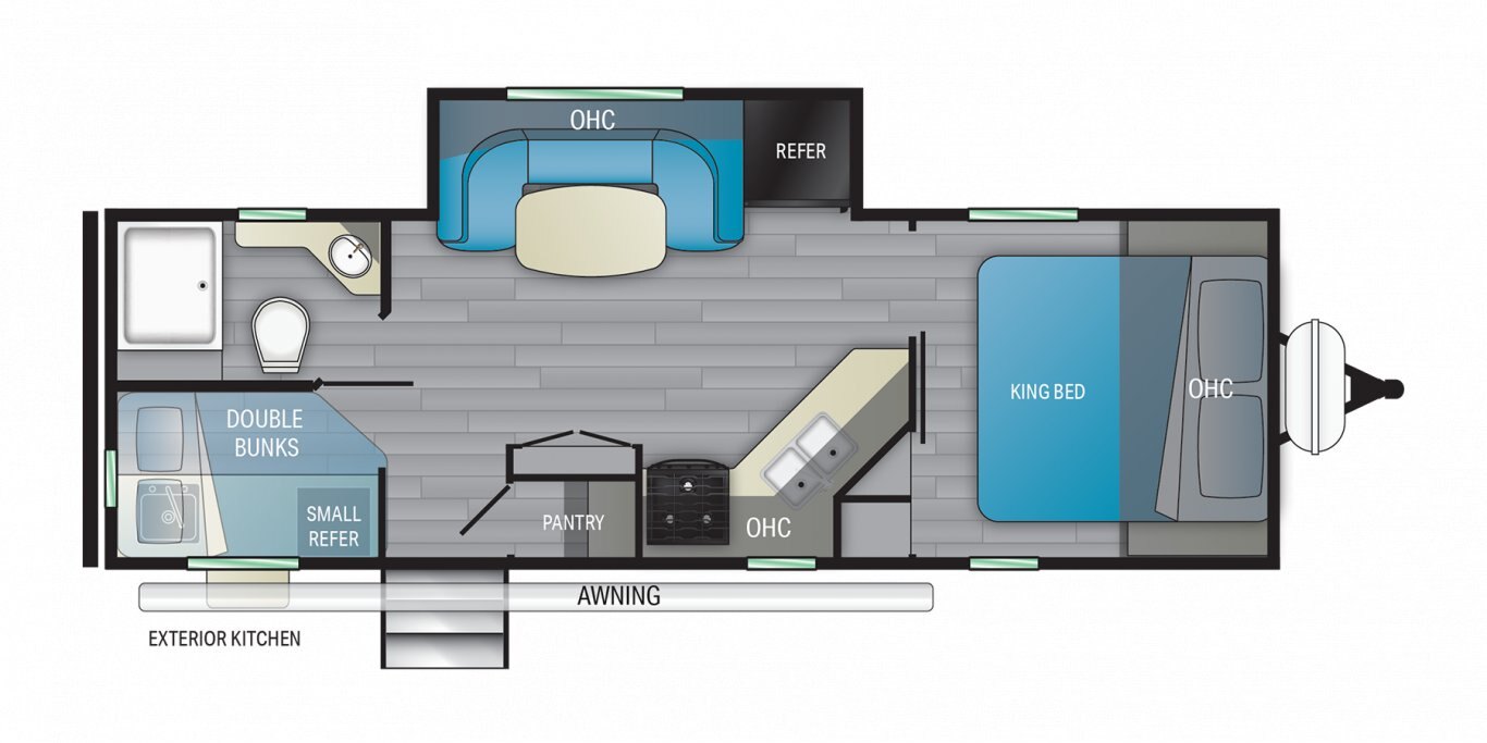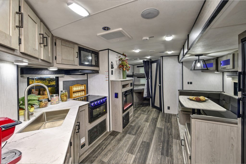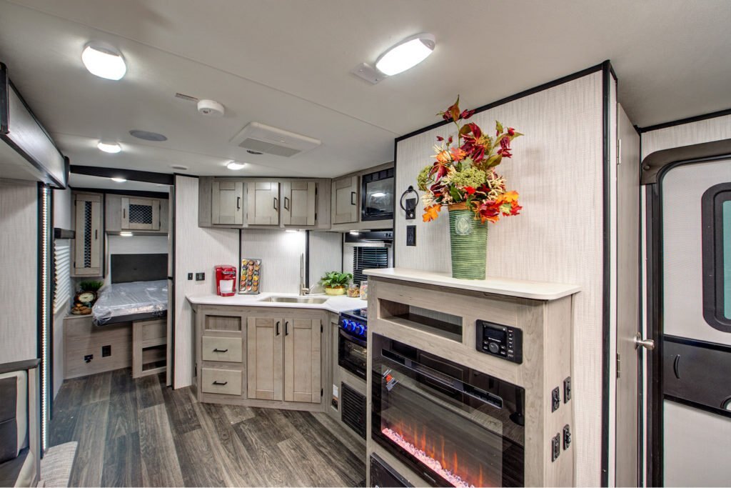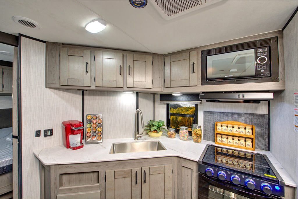Take the scenic route. The open concept of this small, ultra light travel trailer makes it both accommodating and convenient. You’ll love the inspiring all-new Master Chef Kitchen with Infinity edge countertops and stainless undermount sink. And with the hassle-free Super King Kong sized pass-thru storage (67.5 cu.ft.), you’re always ready to hit the road.
