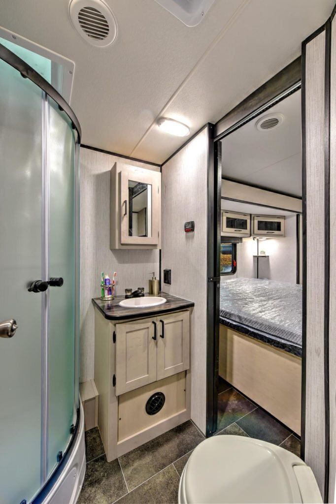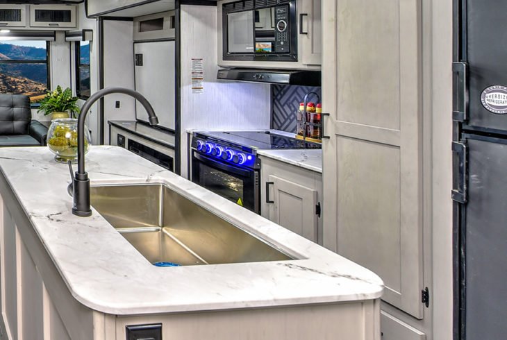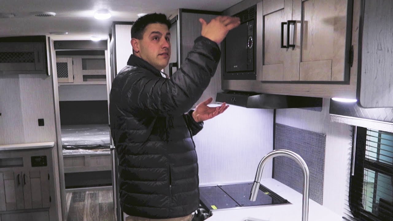Take the scenic route. The open concept of this small, ultra light travel trailer makes it both accommodating and convenient. You’ll love the inspiring all-new Master Chef Kitchen with Infinity edge countertops and stainless undermount sink. And with the hassle-free Super King Kong sized pass-thru storage (67.5 cu.ft.), you’re always ready to hit the road.