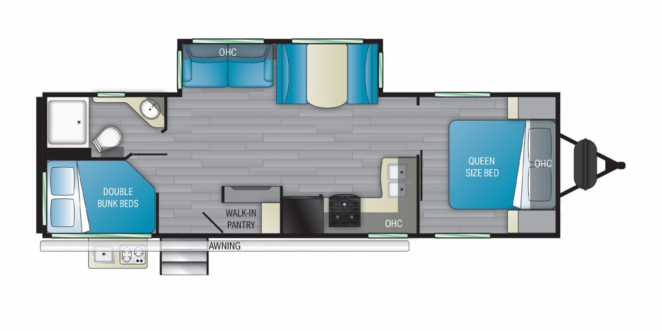Whether you’re an RV newbie or just looking for a smaller option, this RV is for you. This lightweight travel trailer offers plenty of options: from easy-to-manage single-sided coaches to double-sided bunkhouses. You’ll appreciate the clean design and privacy of roller shades on every window. And the innovative Azdel laminated sidewalls use a lightweight non-wood substrate to create a sound barrier and better insulation value.