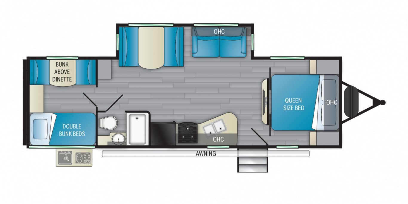 Whether you’re an RV newbie or just looking for a smaller option, this RV is for you. This lightweight travel trailer offers plenty of options: from easy-to-manage single-sided coaches to double-sided bunkhouses. You’ll appreciate the clean design and privacy of roller shades on every window. And the innovative Azdel laminated sidewalls use a lightweight non-wood substrate to create a sound barrier and better insulation value.