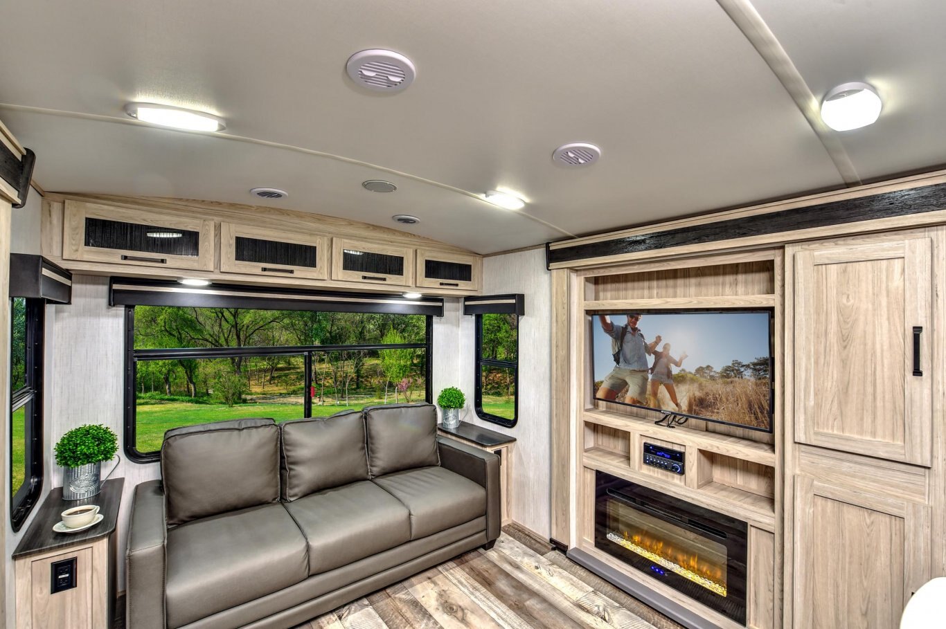 • Woven flooring and flush floors in all slide outs making it family and dog friendly