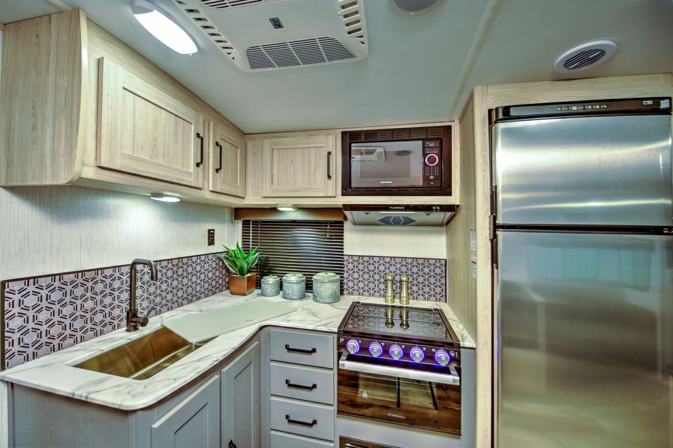 GEOMETRIC BACKSPLASH WITH MARBLE COUNTERTOPSHeartland Sundance Ultra Lite 301BH