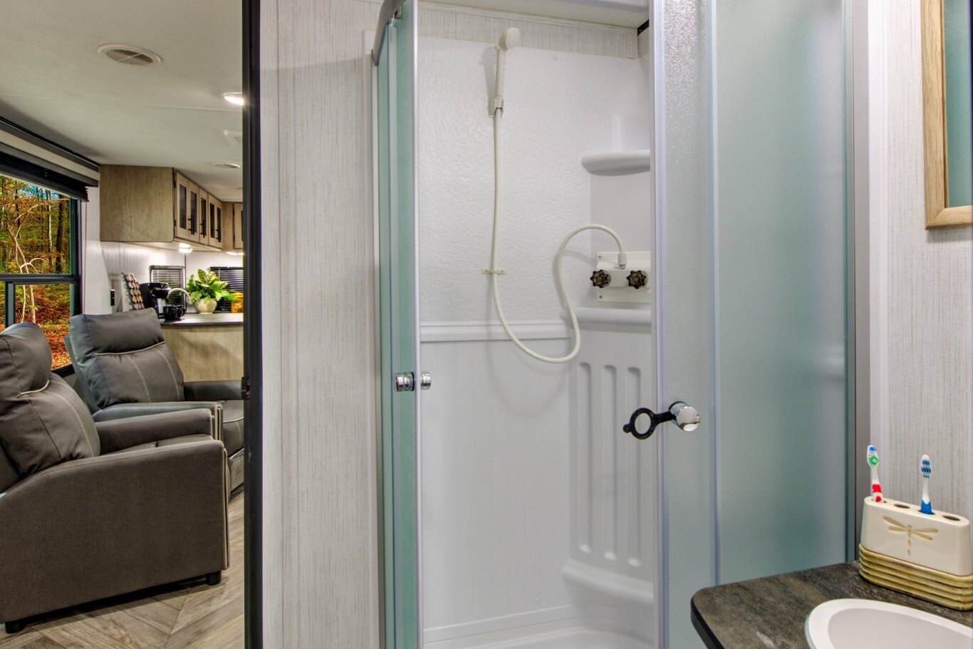 EZ Clean Interior – No carpet, full linoleum on main floor and slide outs