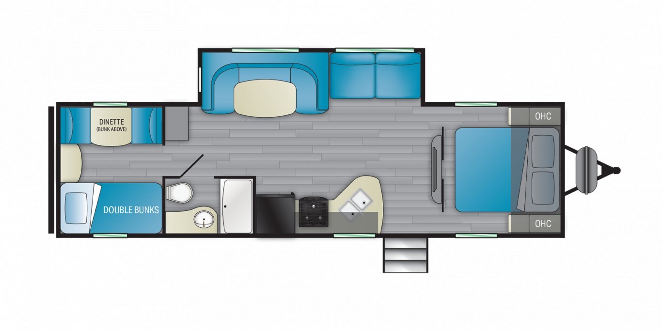 The best-selling RV of all time. These travel trailers excel in value, reliability and ease of use. H Blast AC provides unmatched cooling performance — up to 50% more A/C ducts for better and more efficient air circulation. And MEGA Bright Pass-Thru Storage gives you 52 cu. ft of storage, mega sized access doors and energy-saving LED lights.
