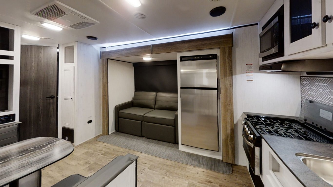 This travel trailer loves to run, and you’ll be right there with it once you see all it has to offer. Get the extra room and the amenities that you need within your budget. Features like open floor plans and deep slide-outs with easy- clean woven flooring make the space comfortable and hypo-allergenic. Plus, a griddle in the outdoor kitchen means you’ll be cooking in style.