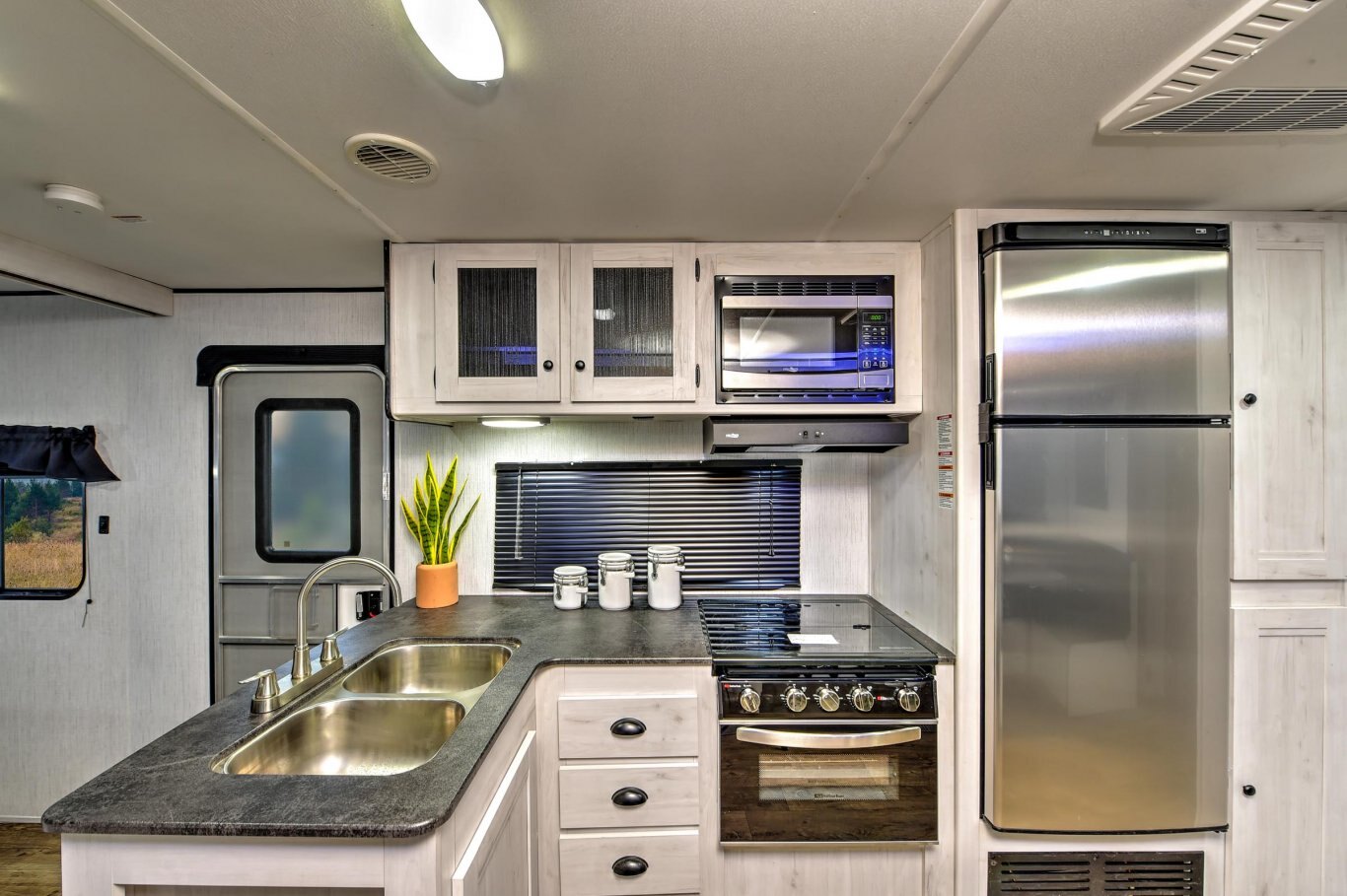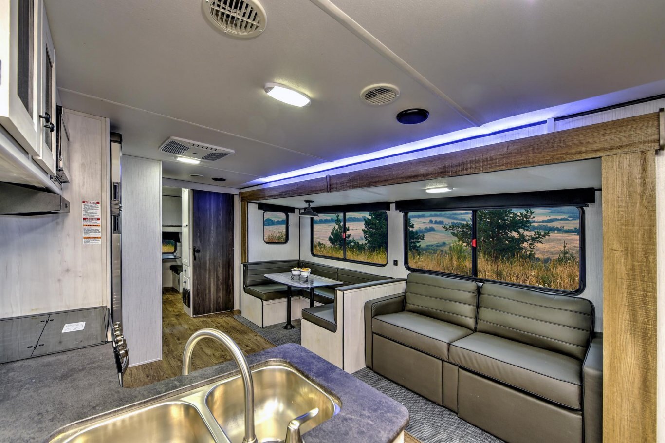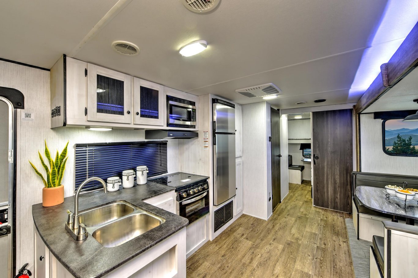 This travel trailer loves to run, and you’ll be right there with it once you see all it has to offer. Get the extra room and the amenities that you need within your budget. Features like open floor plans and deep slide-outs with easy- clean woven flooring make the space comfortable and hypo-allergenic. Plus, a griddle in the outdoor kitchen means you’ll be cooking in style.
