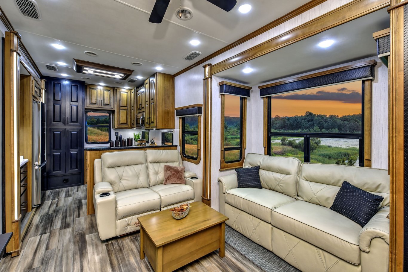 This iconic, top of the line fifth wheel launched our brand nearly twenty years ago. Features like walk-in closets with deep shelves, double hanging rods, cedar lining and washer/dryer prep make it stand out. Our industry leading 8,000 lb axles on H-range tires with 3 3/8˝ brakes, MORryde LRE 4000 and gas shocks have made Landmark first in the luxury RV market.