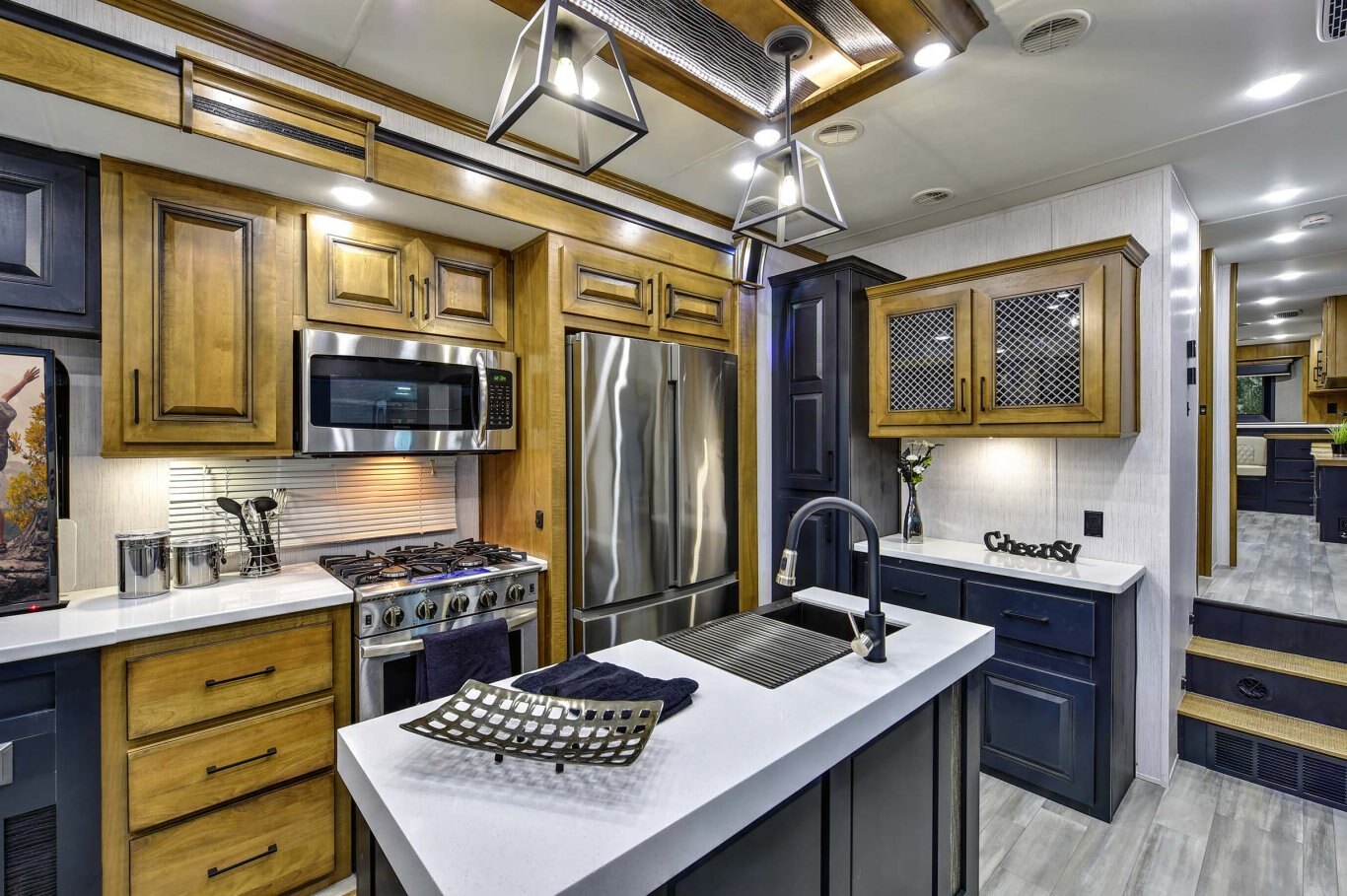 Leading the industry in innovation and value, Bighorn has a big reputation. A favorite of seasonal and full-time adventurers, this fifth wheel RV is loaded with high-end style like two-toned kitchen cabinets. And the convenient, patent pending Store-More storage with three sided access to the basement and 30% more capacity for all your gear.