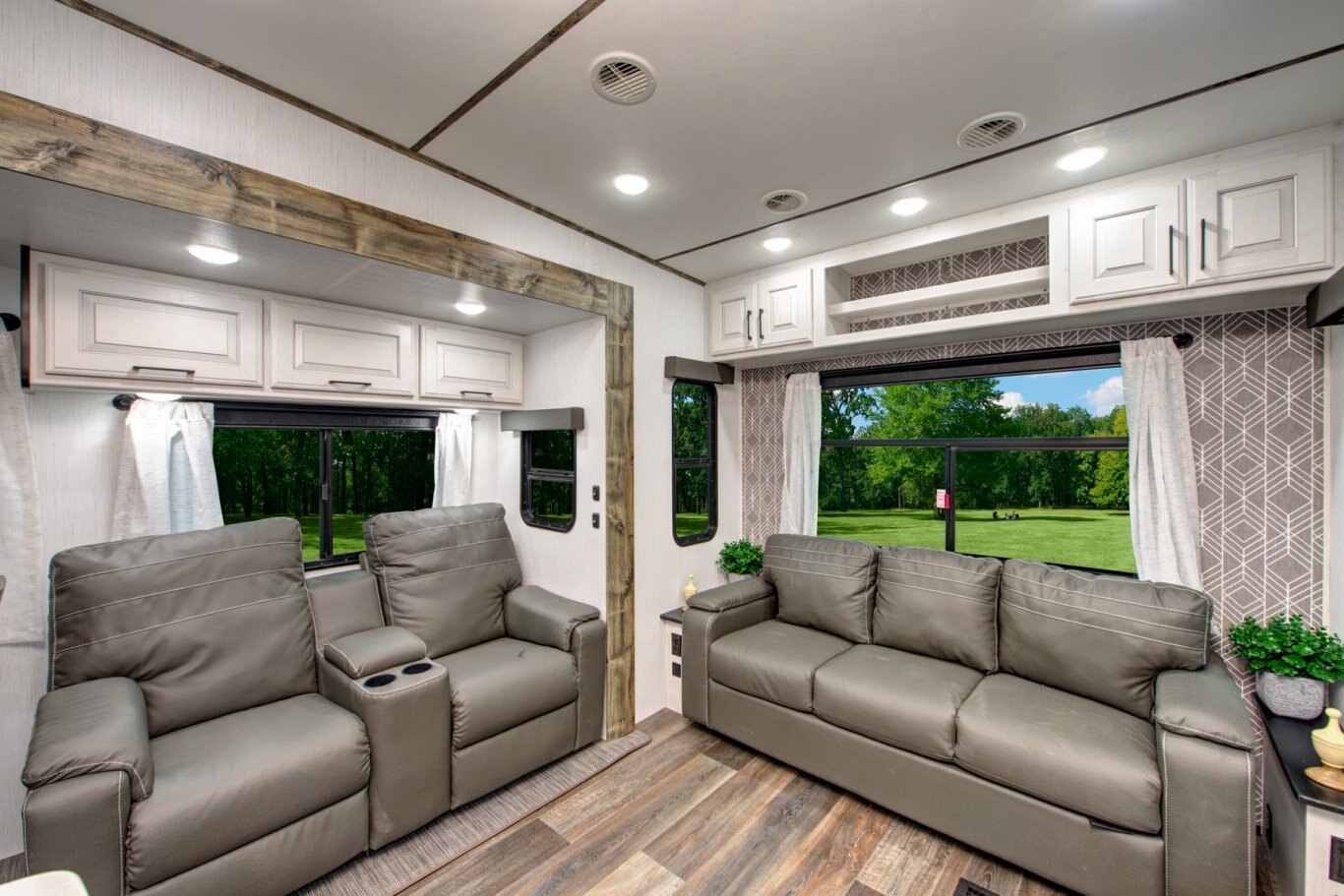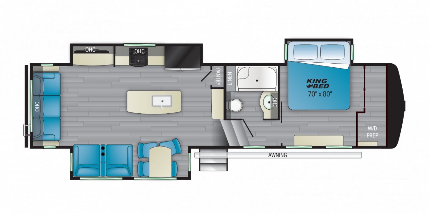 Built for adventurers with big plans, this road-ready beast is tough and dependable. So if your RV dream includes longer road trips, mountainous terrain or a “go anywhere, do anything” attitude, this is your rig. You’ll feel at home with a spacious interior and exceptional storage areas. And a 6-point hydraulic leveling system offers 60,000 lbs. of lifting strength.
