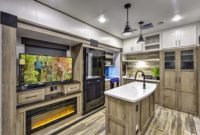 INTERIOR FEATURES 14 Cubic foot residential refrigerator with wine cooler 40˝ Luxury fireplace (most models) Chef kitchen (30˝over the range microwave/21˝ large RV oven) Wifi prep with wireless cell phone charging ports 50˝ Entertainment tv with integrated sound bar