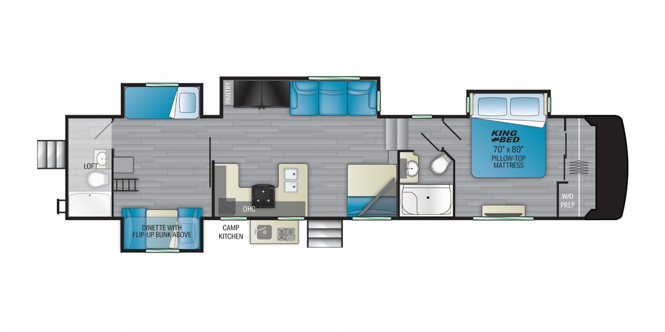 Aptly named, this fifth wheel RV provides innovative amenities without leaving value behind. No need to break the bank––a 50-inch entertainment TV with integrated sound bar, and upgraded MORryde solid step with quick adjust system at every door come standard.