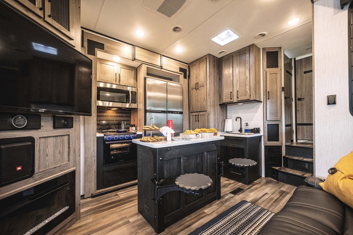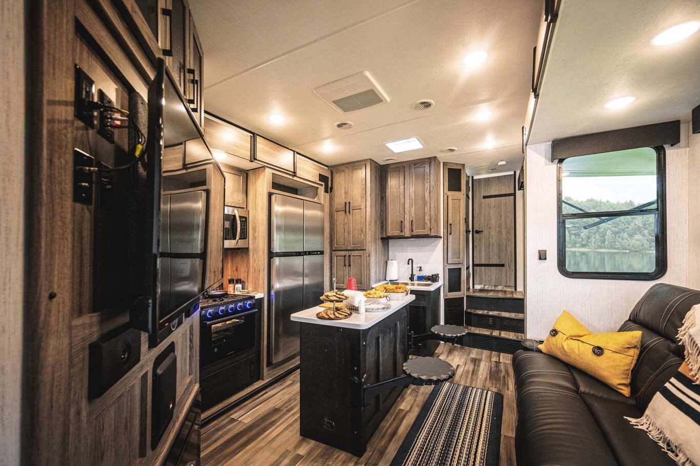 Play hard with family and friends. With the easy towing of a fifth wheel and the versatility of a toy hauler, everyone and everything can come along for the ride: family, friends and all your toys. Plus you’ll enjoy top-notch touches like a JBL Hi-Fi sound system with subwoofer and a Zero gravity ramp door with patio kit.