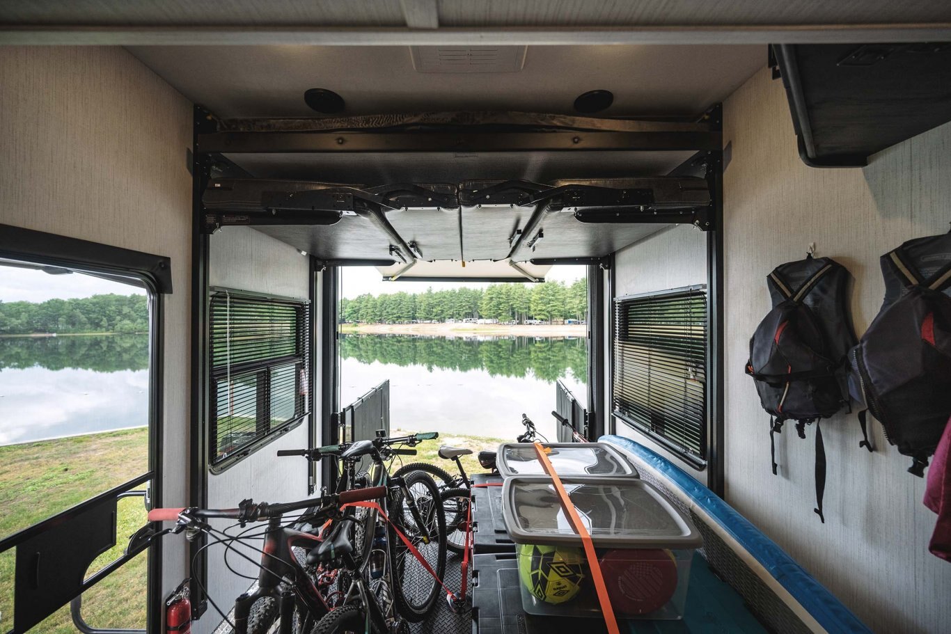• Zero Gravity Garage Door – easily raise or lower the back door with no extra hardware.