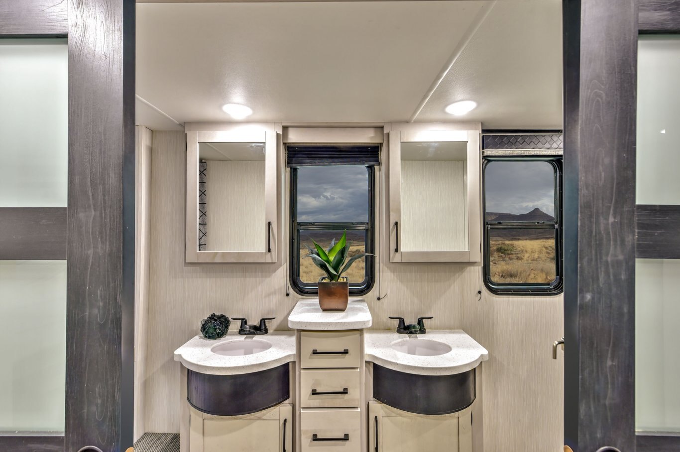 BATHROOM STANDARD FEATURES Spacious bathtub Bathroom power vent Heat and A/C in bathroom Skylight over shower Porcelain toilets