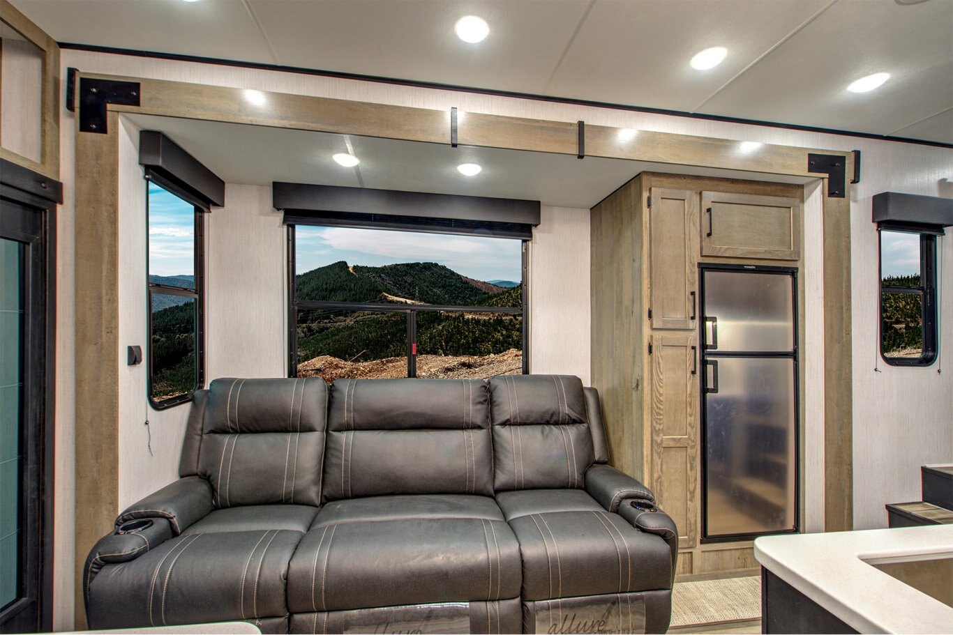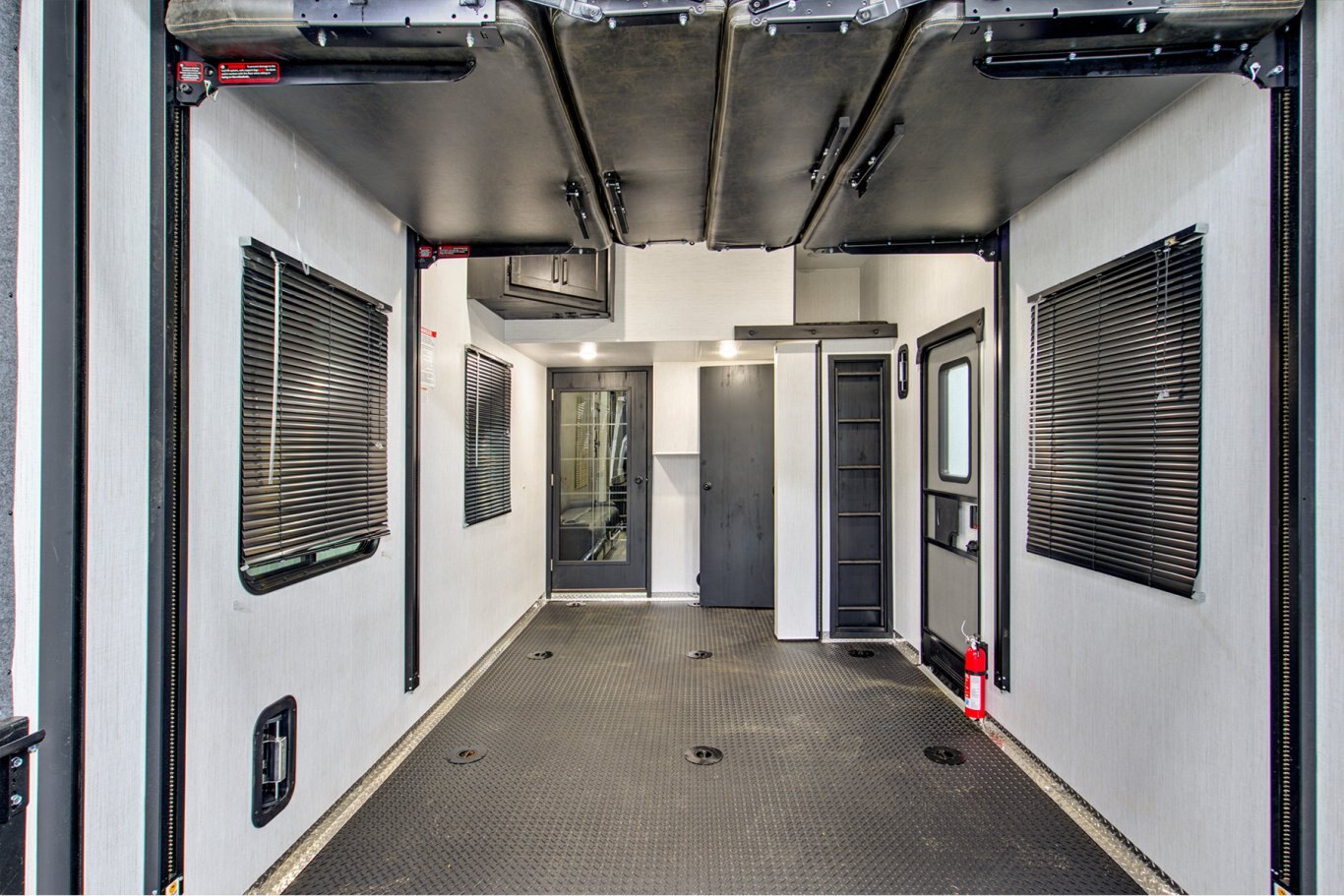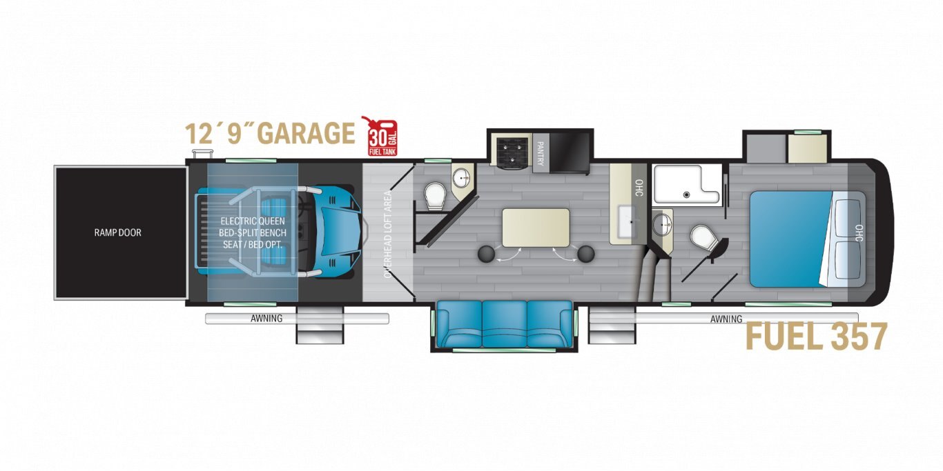 FUEL XTREME PACKAGE (FORCED) Wide Body Construction High Gloss Aluminum Framed & Laminated Sidewalls Tinted Safety Glass Windows Aluminum Rims Spare Tire Dexter 7000# Axles Power Front Landing Gear Power Rear Stabilizers Universal Docking Station w/Black Tank Flush Heated and Enclosed Underbelly LED Stop/Turn/Tail Lights, Twin 30# LP Tanks, Exterior Speakers Back-up Camera Prep Power Awning w/LED Light Solar Prep Triple Entry Garage Steps Fuel Station w/Generator Prep Rear Ramp Door