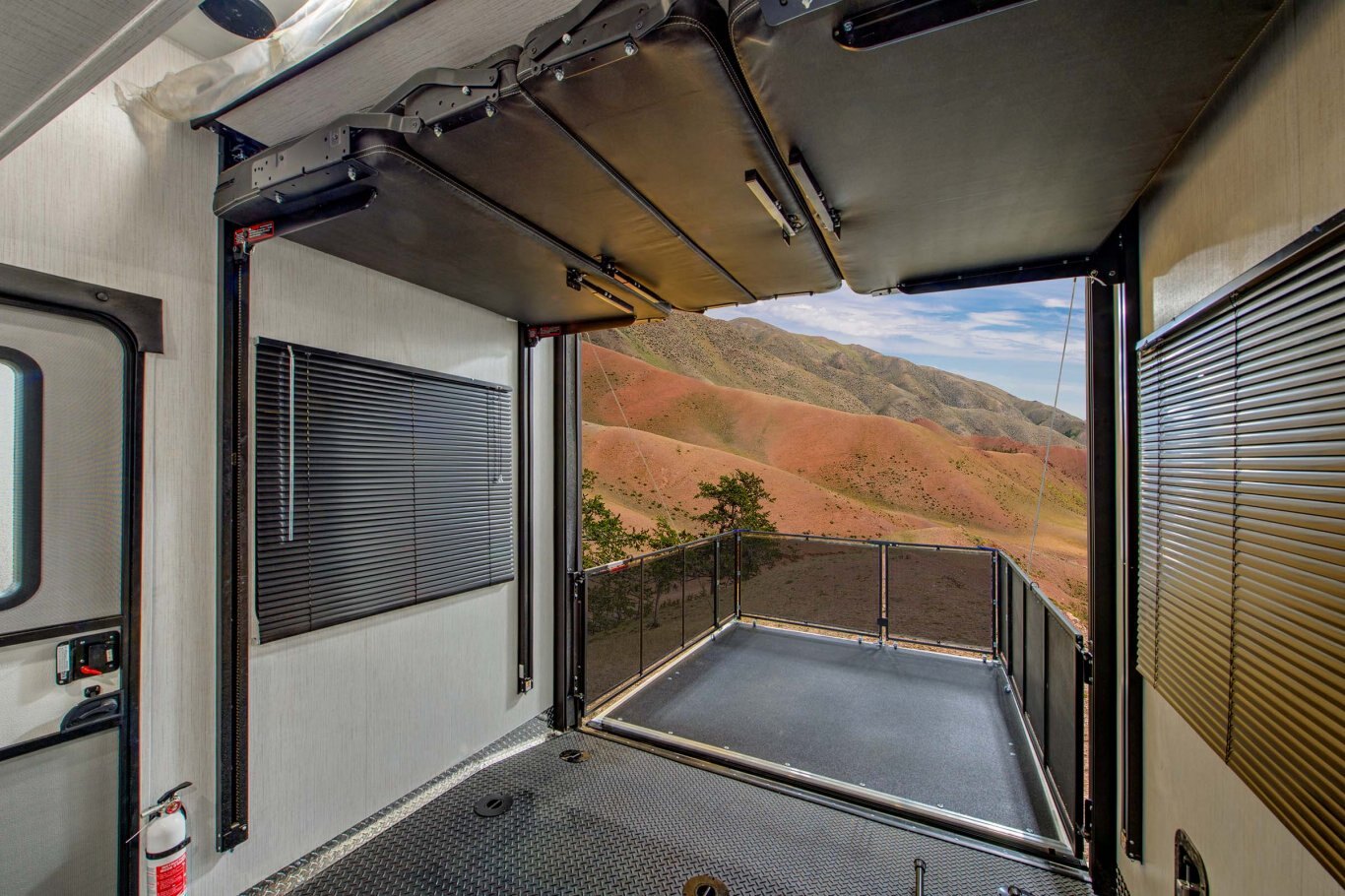 EXTERIOR FEATURES 30 Gallon Fuel Station – Lockable and tucked out of sight MORryde StepAbove entry step for a stable, safe, and secure entry and exit Ramp Door Patio Kit – quick connect patio rail system providing structure for added living space Industry leading Dexter axels with G range tires 100 Watt solar panel with inverter prep