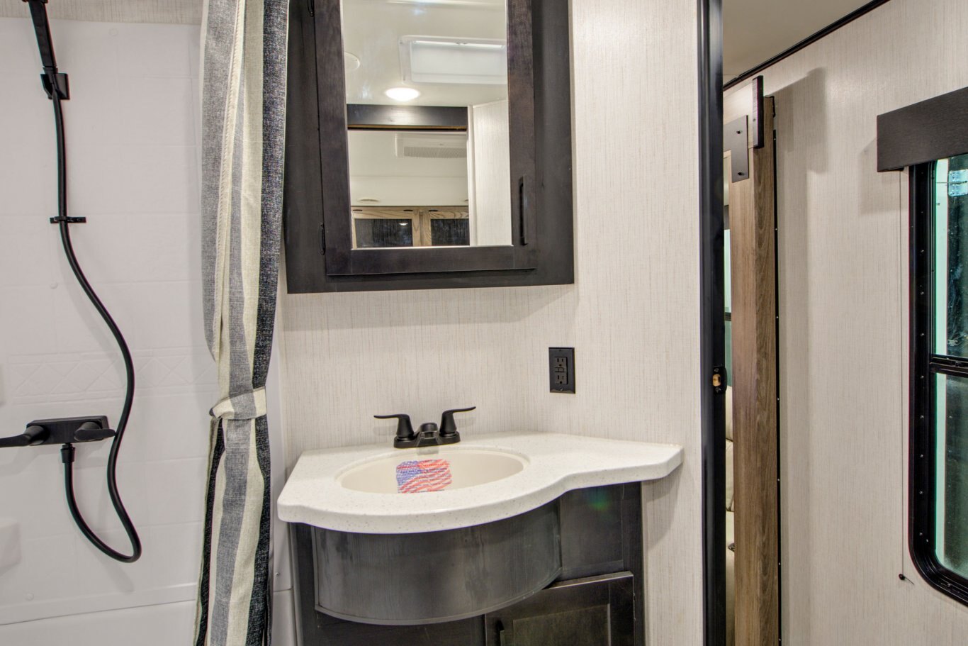 OPTIONS 5.5 Onan Gas Generator Ramp Door Patio w/ Quick Connect Patio System 50” Living Room TV Electric 6 Point Leveling