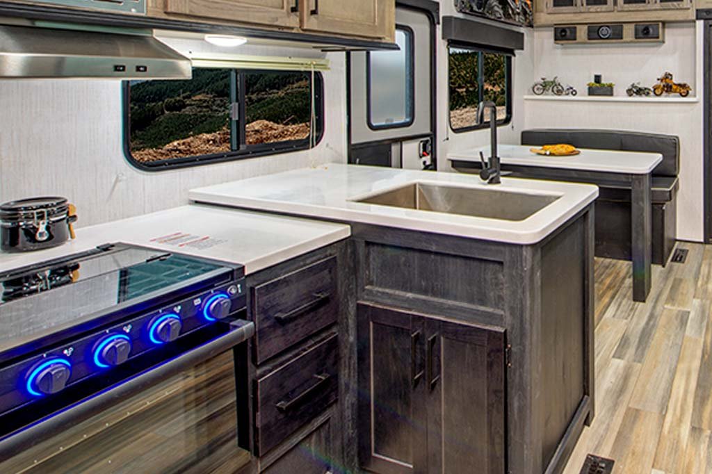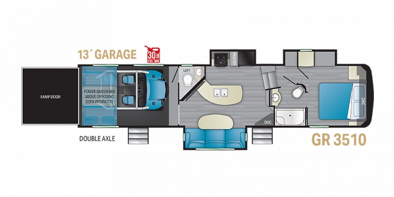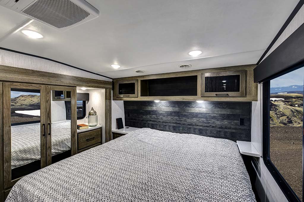 Our Gravity toy hauler is built for all you weekend warriors. Go on an adventure with peace of mind knowing frame welded tie downs are safely holding your toys in place. Create your own oasis anywhere in the great outdoors with standard King beds, a JBL Hi-Fi Sound System with a Subwoofer, and wireless charging ports. At the end of the day, kick back and relax on the ramp door patio with a patio rail kit making the sunset even more enjoyable than ever before.