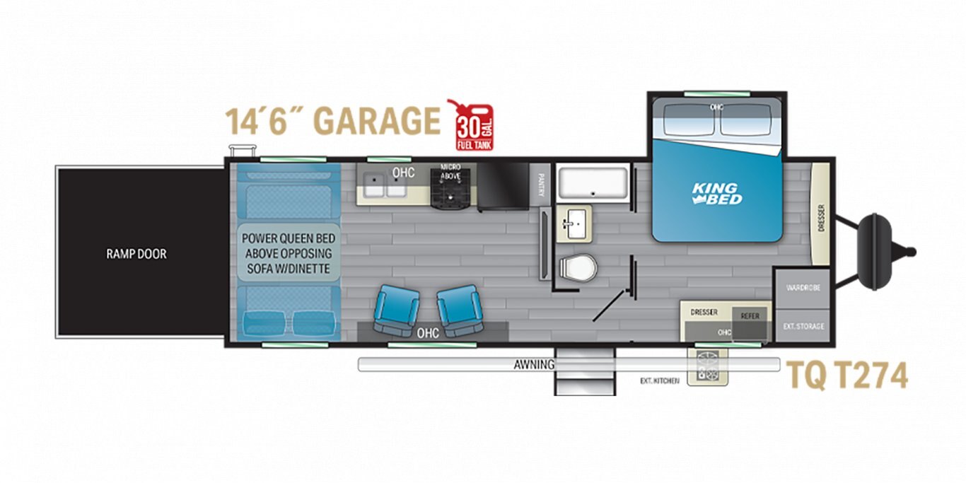 King of ½ Baths! We offer more ½ bath floor plans in our toy hauler garages than anyone in the industry.