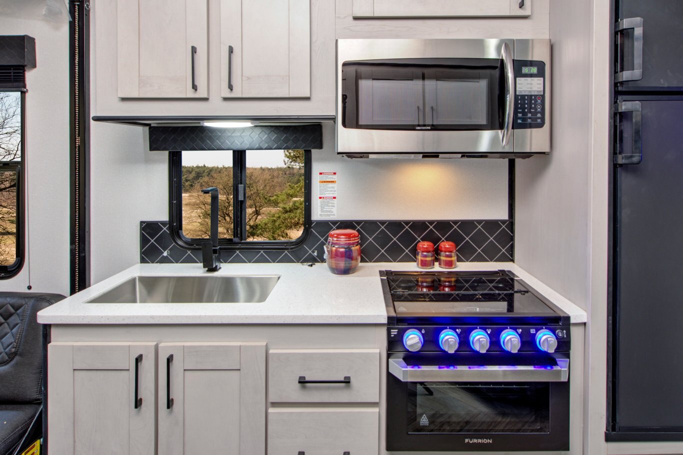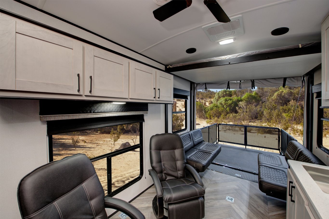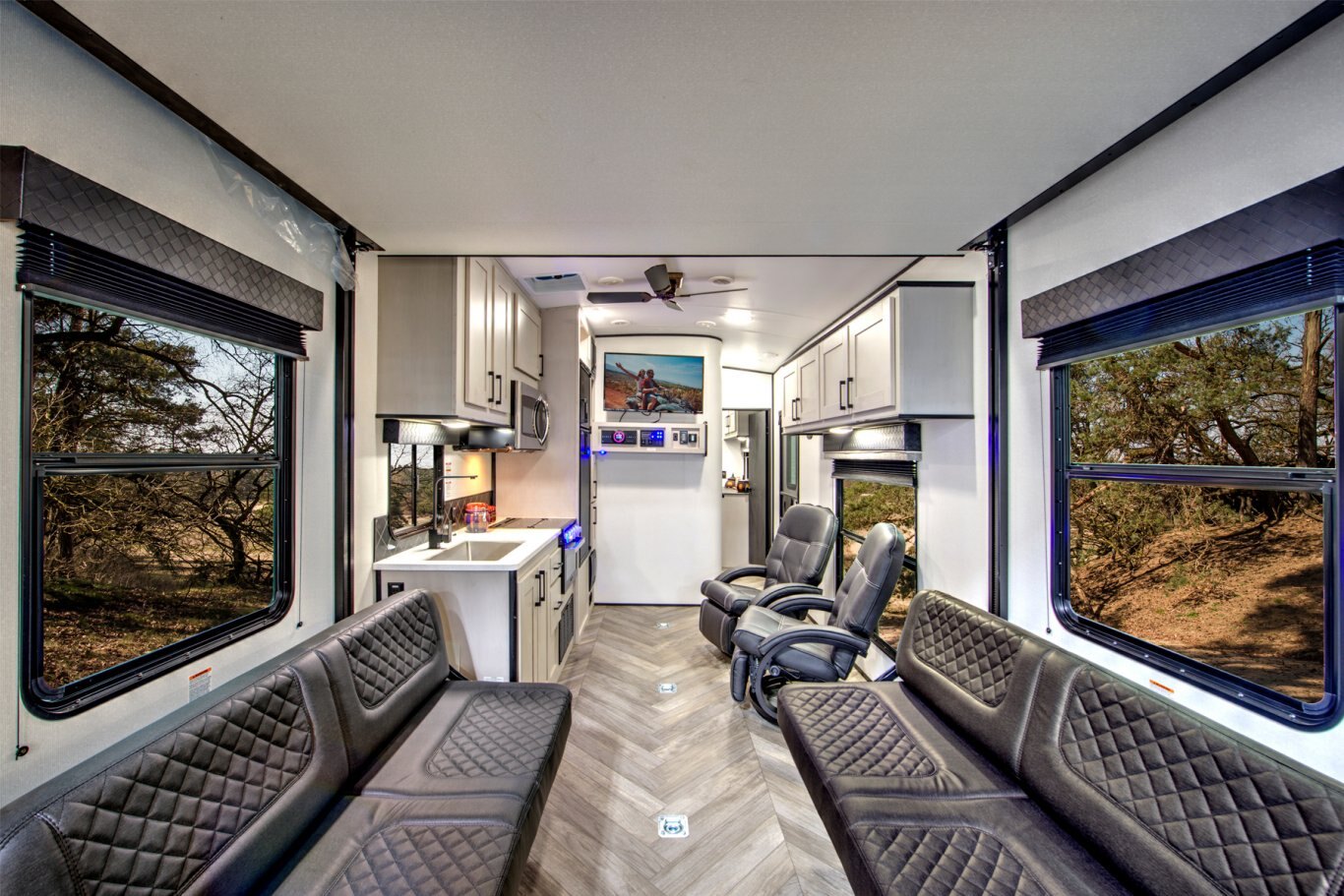 Check your next adventure off your bucket list with the capability of a travel trailer and the versatility of a toy hauler. Revel in the ultimate interior living space with high-end residential touches and feel the call of the wild knowing that your cargo possibilities are endless — and your toys are conveniently stashed on board.