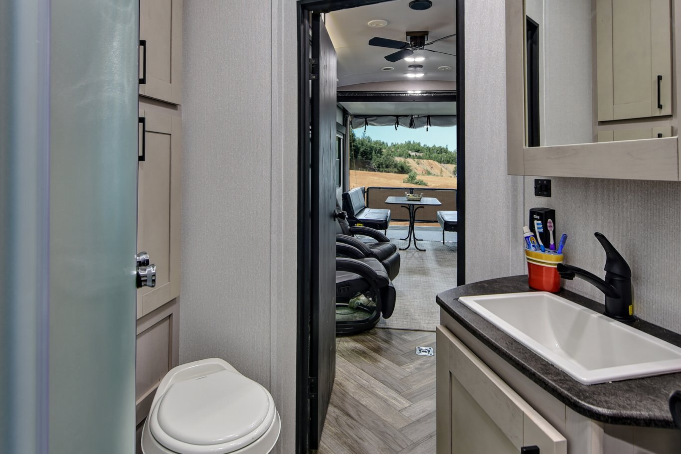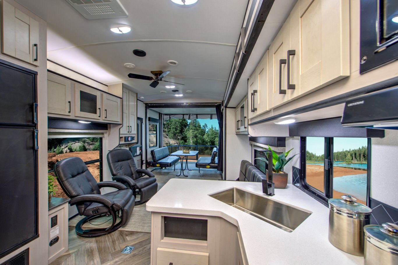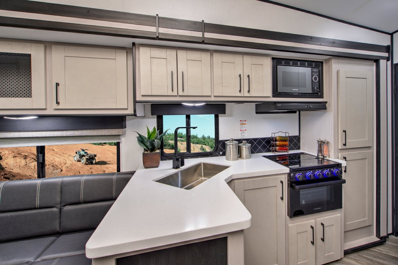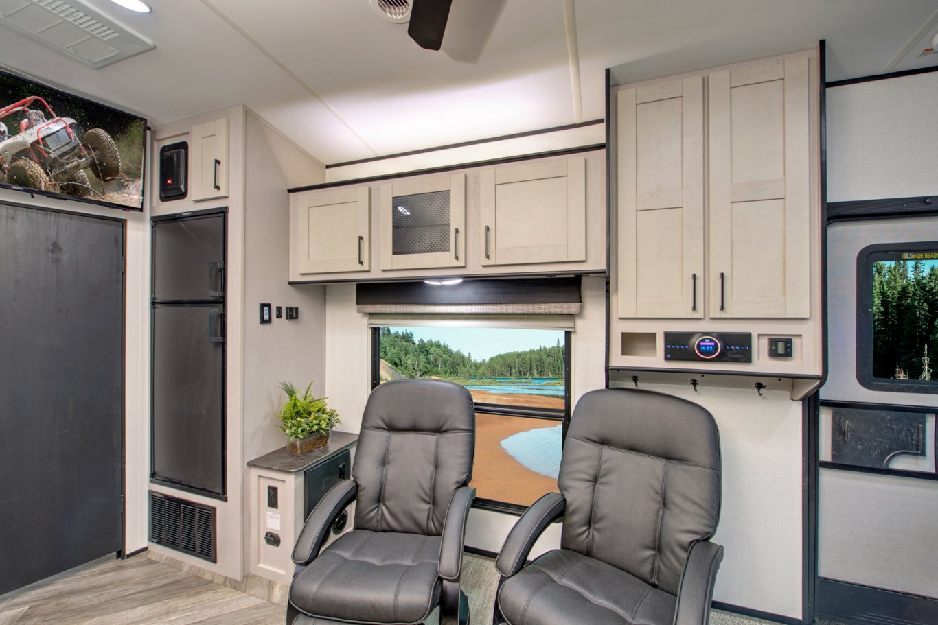 Check your next adventure off your bucket list with the capability of a travel trailer and the versatility of a toy hauler. Revel in the ultimate interior living space with high-end residential touches and feel the call of the wild knowing that your cargo possibilities are endless — and your toys are conveniently stashed on board.