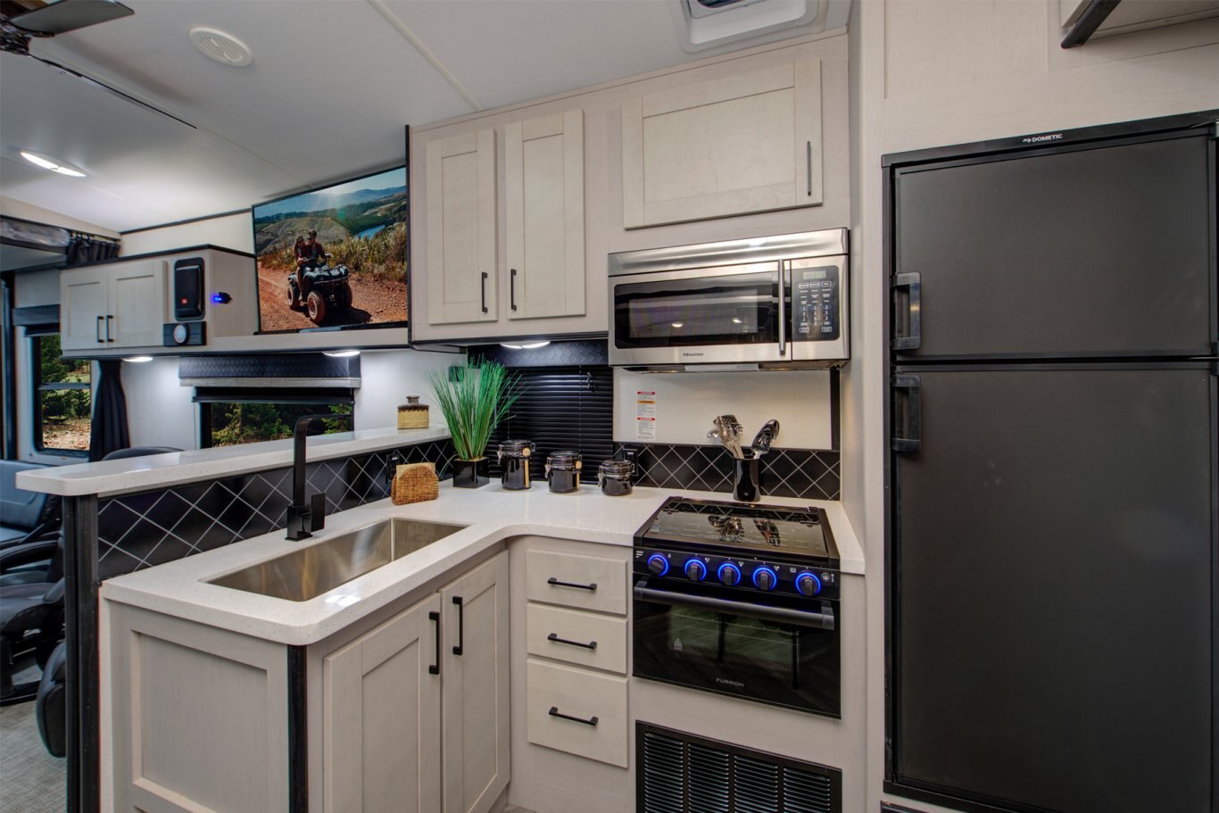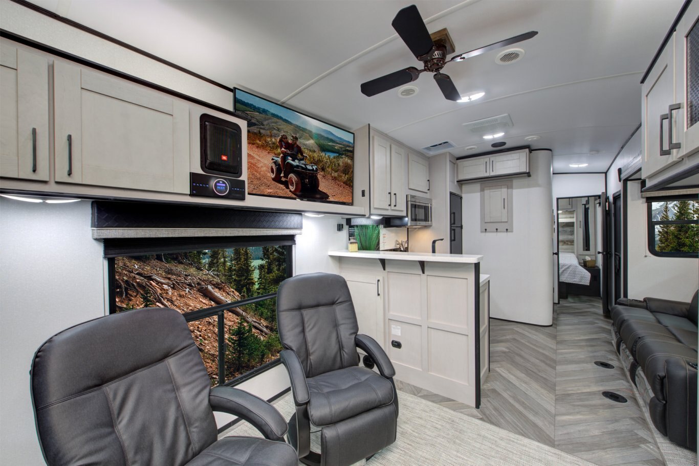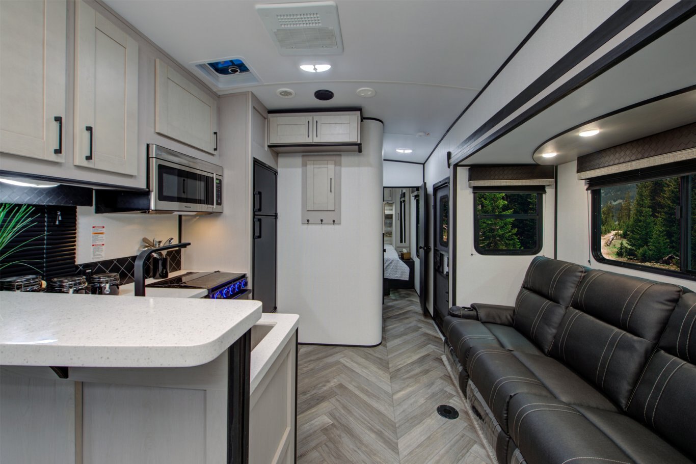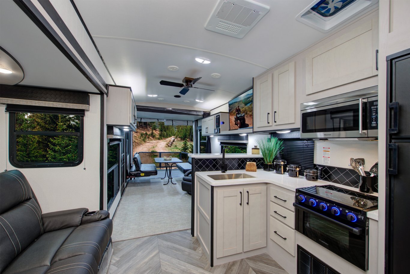 Check your next adventure off your bucket list with the capability of a travel trailer and the versatility of a toy hauler. Revel in the ultimate interior living space with high-end residential touches and feel the call of the wild knowing that your cargo possibilities are endless — and your toys are conveniently stashed on board.