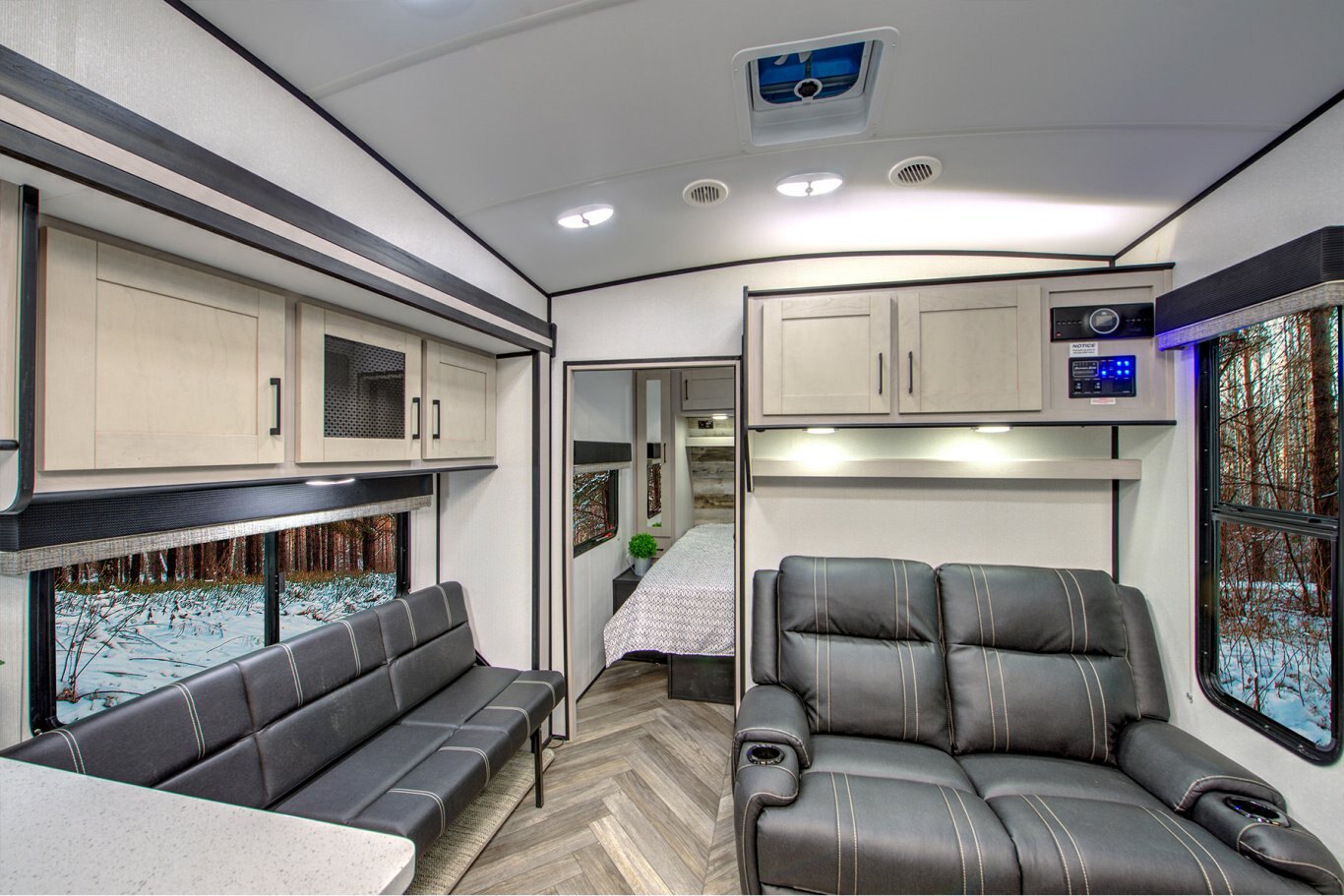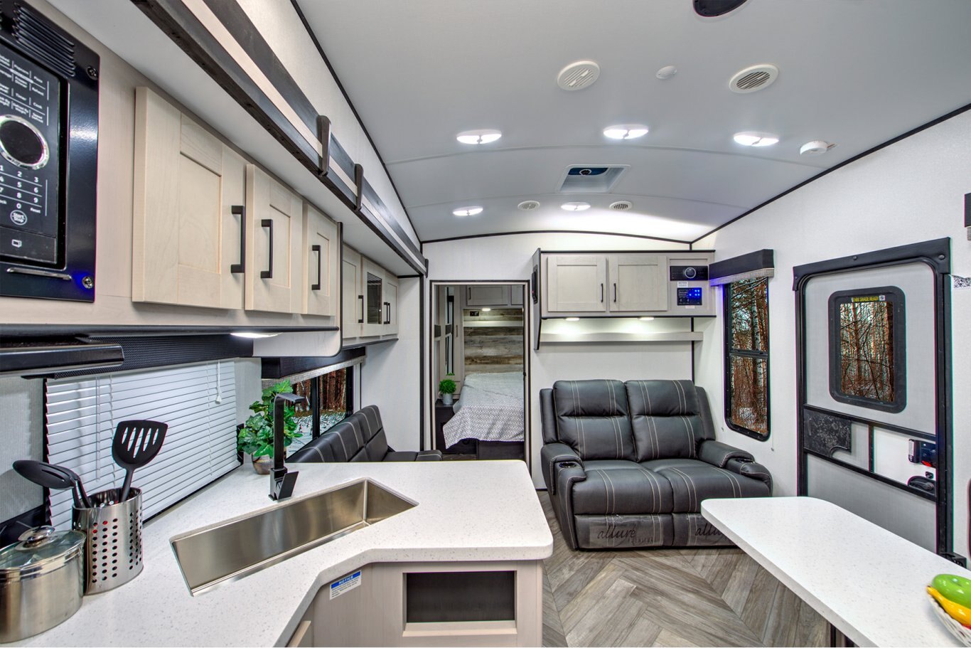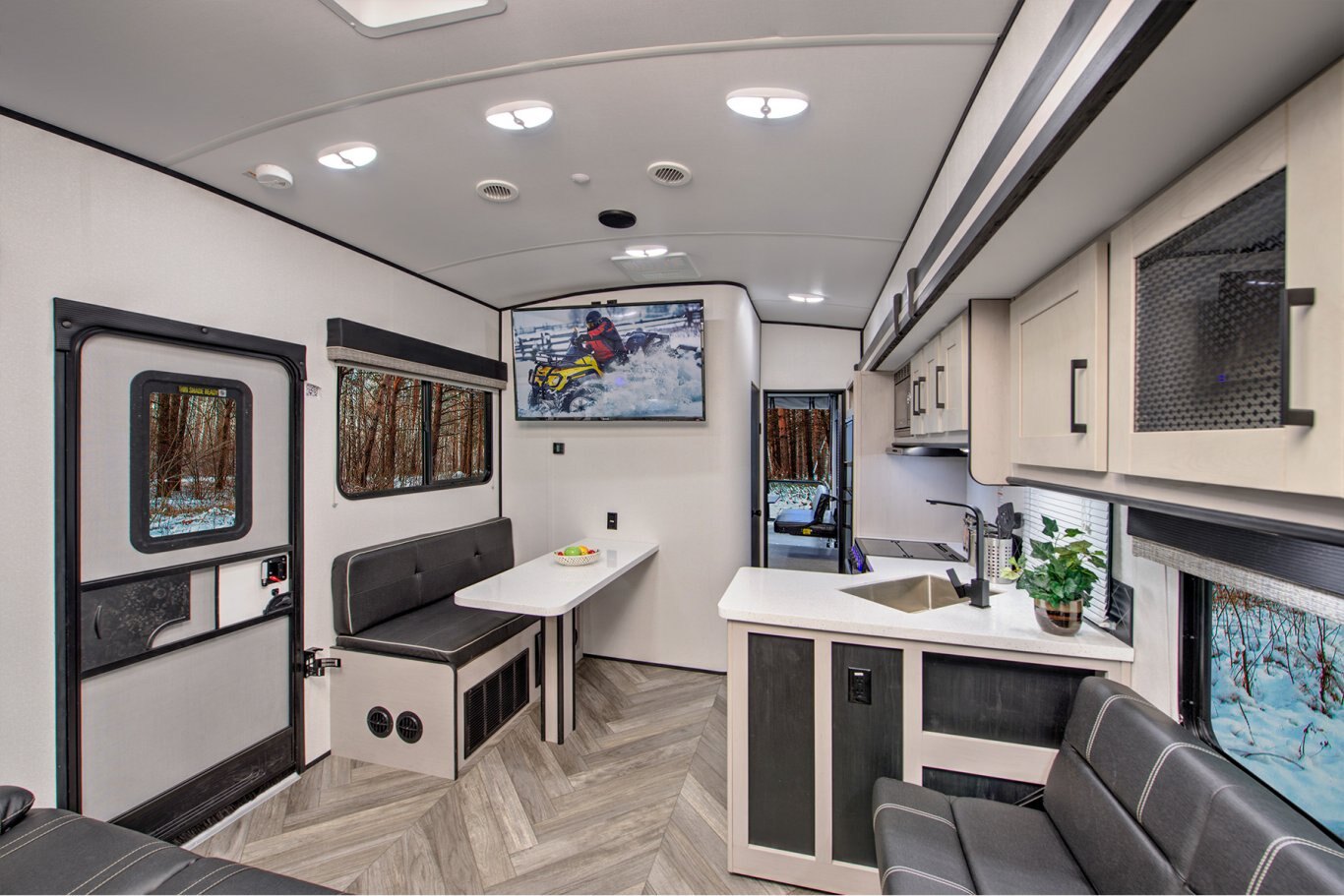 Check your next adventure off your bucket list with the capability of a travel trailer and the versatility of a toy hauler. Revel in the ultimate interior living space with high-end residential touches and feel the call of the wild knowing that your cargo possibilities are endless — and your toys are conveniently stashed on board.