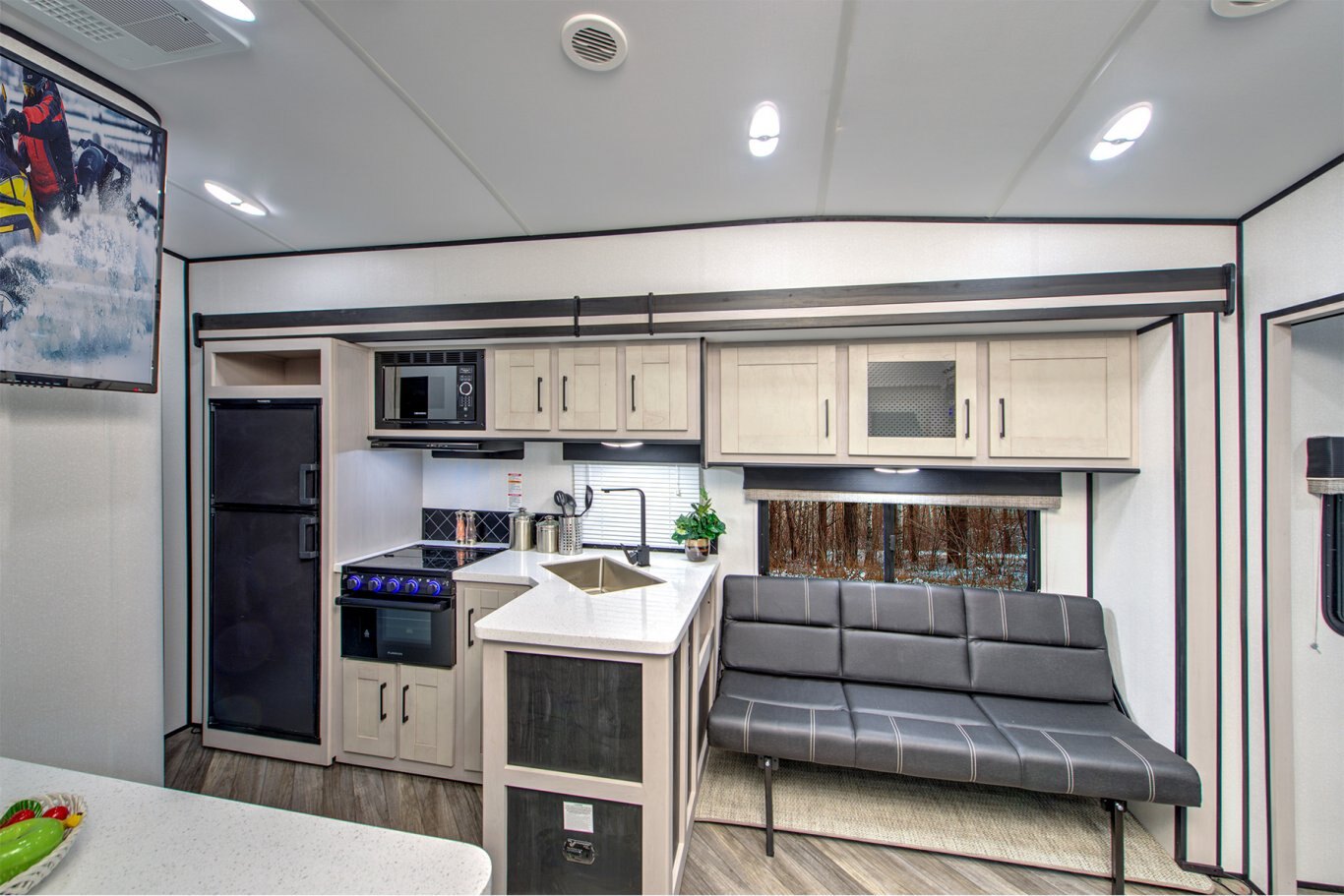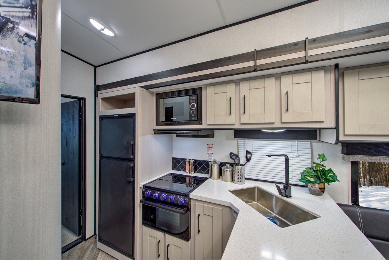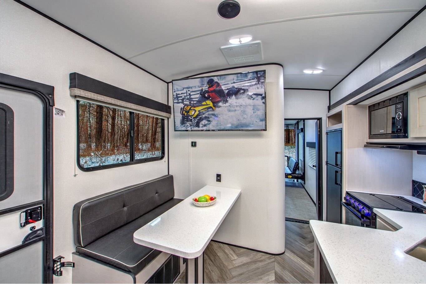 Check your next adventure off your bucket list with the capability of a travel trailer and the versatility of a toy hauler. Revel in the ultimate interior living space with high-end residential touches and feel the call of the wild knowing that your cargo possibilities are endless — and your toys are conveniently stashed on board.
