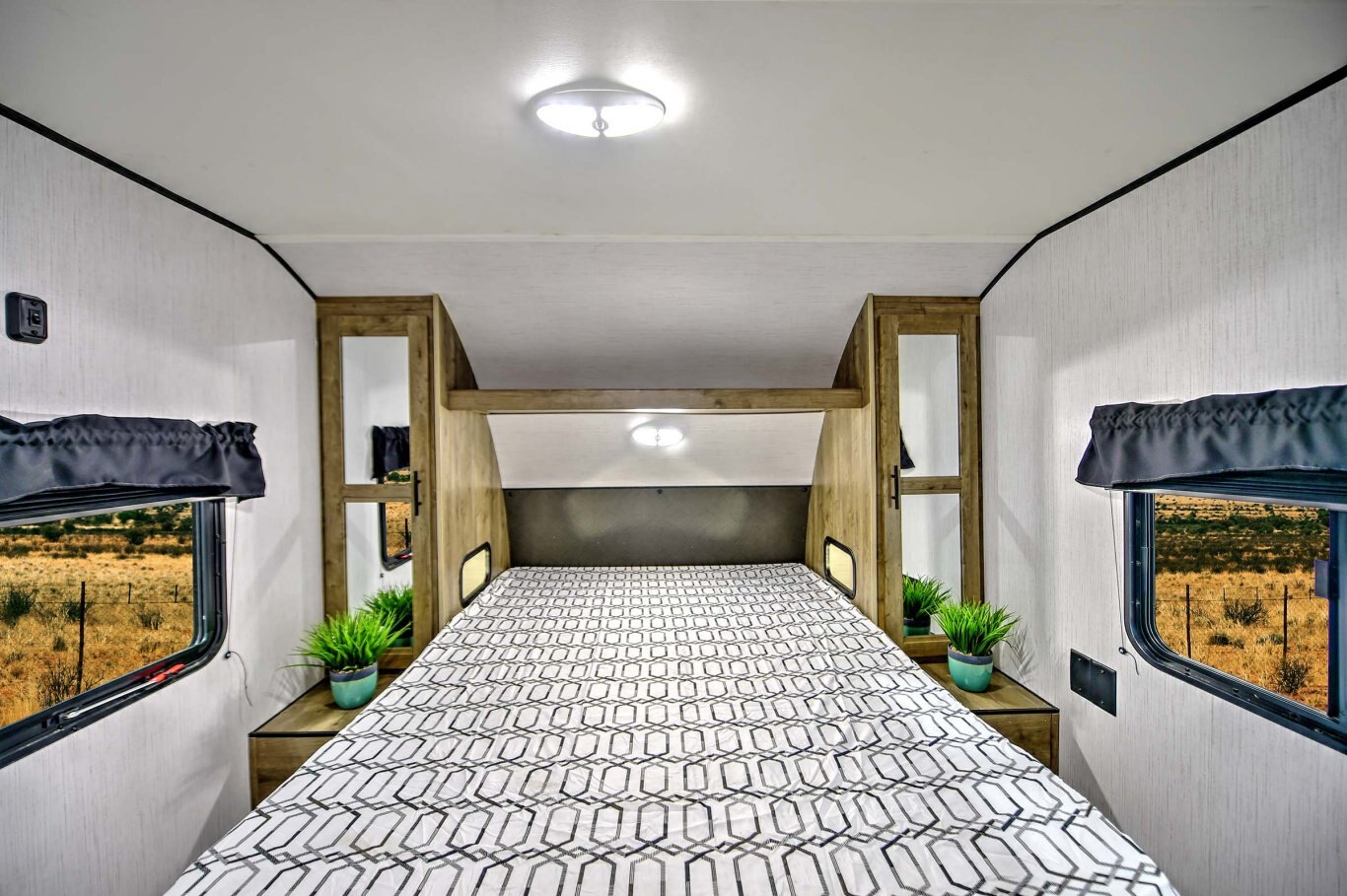 Pioneer Master Suite – Full size residential queen bed (60”x 80”), full length dual wardrobes with integrated lighting and USB charging, CPAP ready storage with full power access.