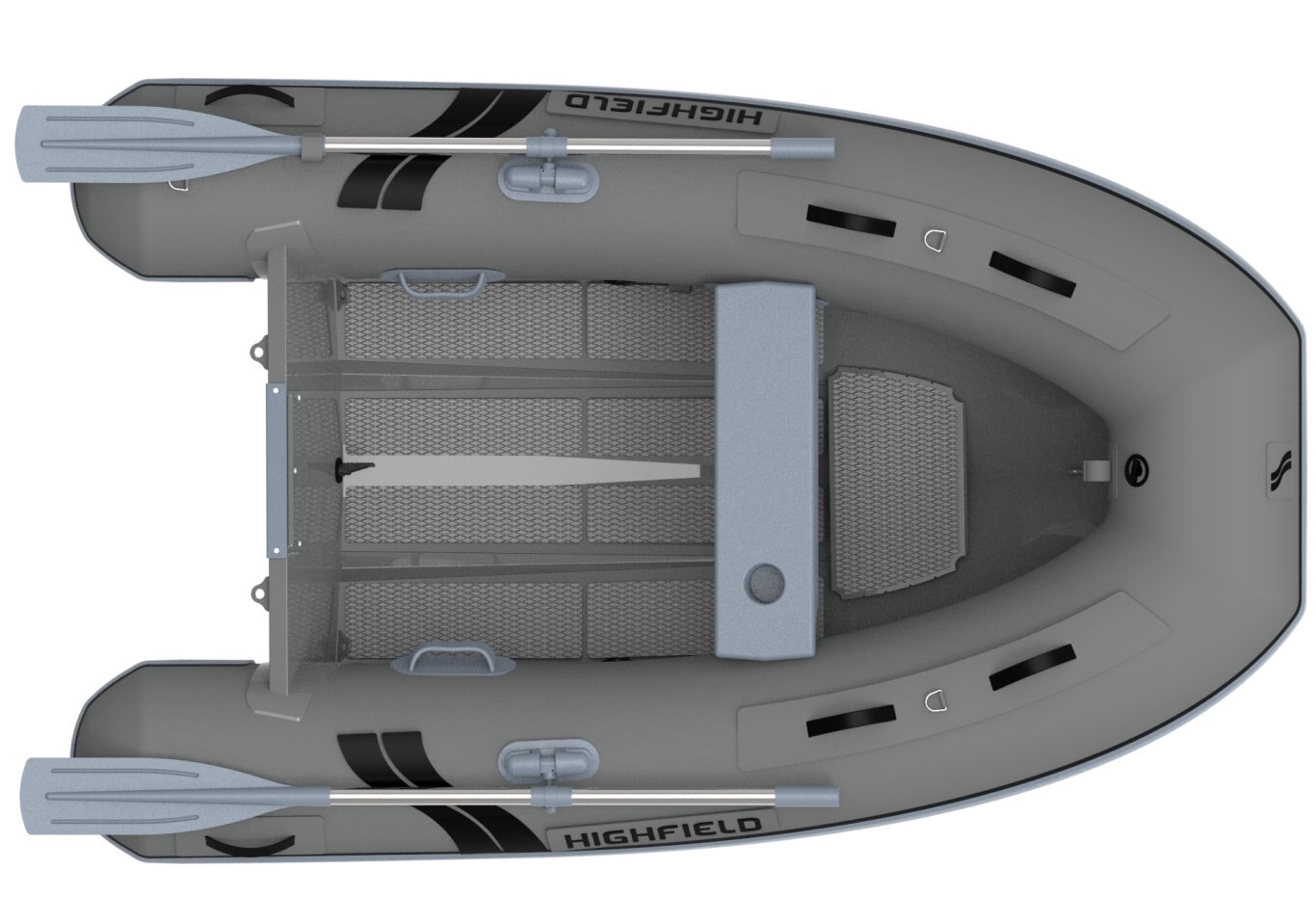 ORCA® Hypalon or PVC tube Flush mount non-return valves High tensile chromated & powder coated aluminum hull Lifting points and towing eyes Anti-slip deck Welded seams (PVC) Removable seat Tow bridle points Full length keel guard Under seat bag EVA Light weight rubbing strake Highfield dry bag Foot pump, oars, repair kit