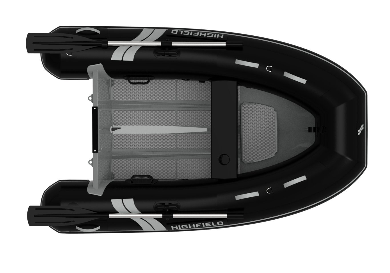 ORCA® Hypalon or PVC tube Flush mount non-return valves High tensile chromated & powder coated aluminum hull Lifting points and towing eyes Anti-slip deck Welded seams (PVC) Removable seat Tow bridle points Full length keel guard Under seat bag EVA Light weight rubbing strake Highfield dry bag Foot pump, oars, repair kit