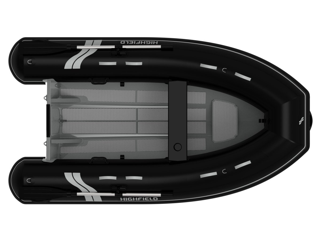 ORCA® Hypalon or PVC tube Flush mount non-return valves High tensile chromated & powder coated aluminum hull Lifting points and towing eyes Anti-slip deck Welded seams (PVC) Removable seat Tow bridle points Full length keel guard Under seat bag EVA Light weight rubbing strake Highfield dry bag Foot pump, oars, repair kit
