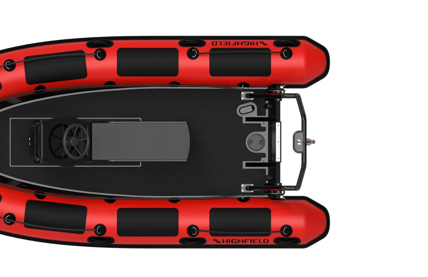 ORCA® Hypalon or PVC tube Flush mount non-return valves High tensile chromated & powder coated aluminum hull Integrated transom supports Self-draining deck Steering wheel Integrated under-deck fuel tank Lifting points and towing eyes Anti-slip deck Heavy duty rubbing strake Keel guard Carbon dash Electrical pack for console Electrical pack for boat Transom ladder Welded seams (PVC) Tow bridle points Highfield dry bag Foot pump, oars, repair kit Electrical pack for boat & console