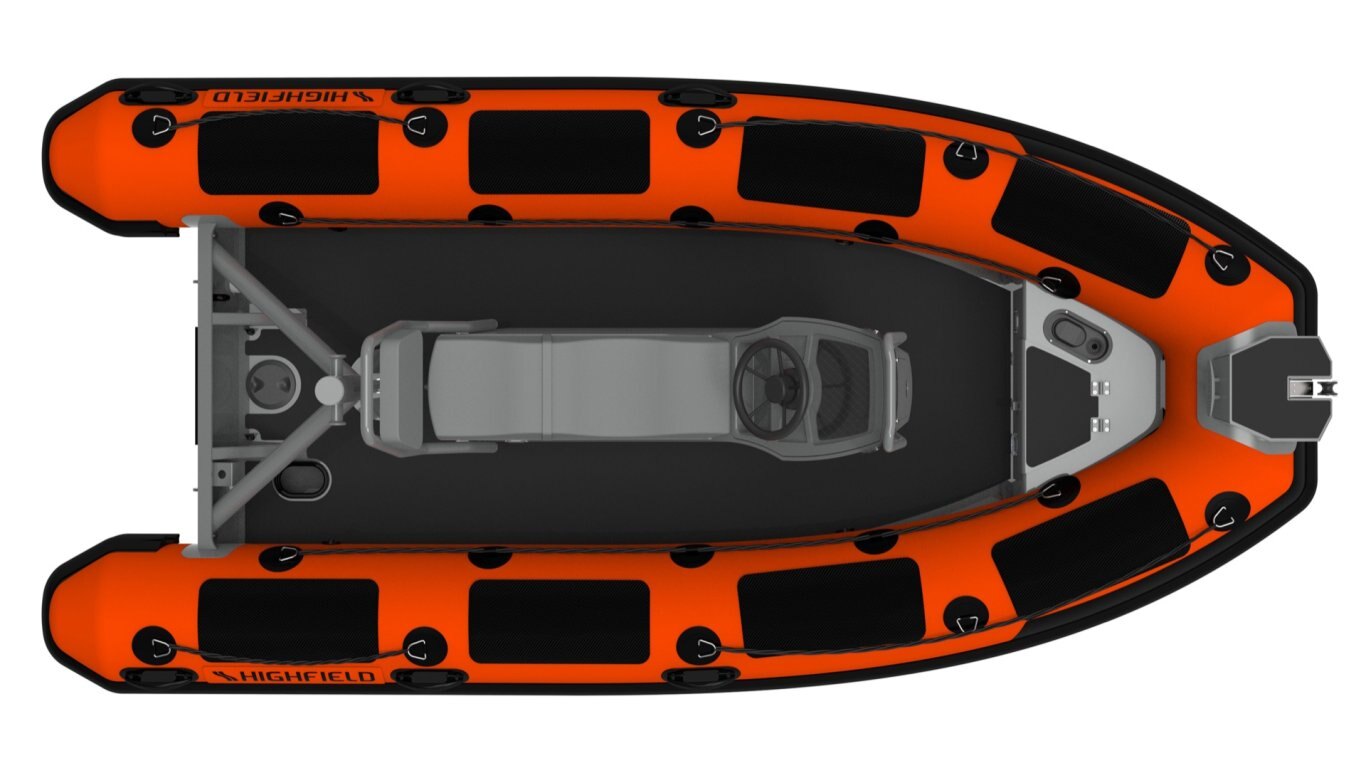 ORCA® Hypalon or PVC tube Flush mount non-return valves High tensile chromated & powder coated aluminum hull Integrated transom supports Self-draining deck Steering wheel Integrated under-deck fuel tank Lifting points and towing eyes Anti-slip deck Heavy duty rubbing strake Keel guard Carbon dash Electrical pack for console Electrical pack for boat Transom ladder Welded seams (PVC) Tow bridle points Highfield dry bag Foot pump, oars, repair kit Electrical pack for boat & console