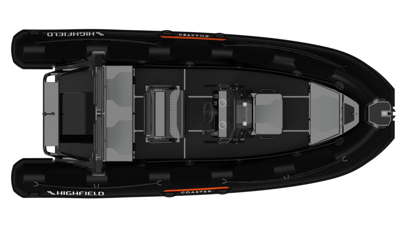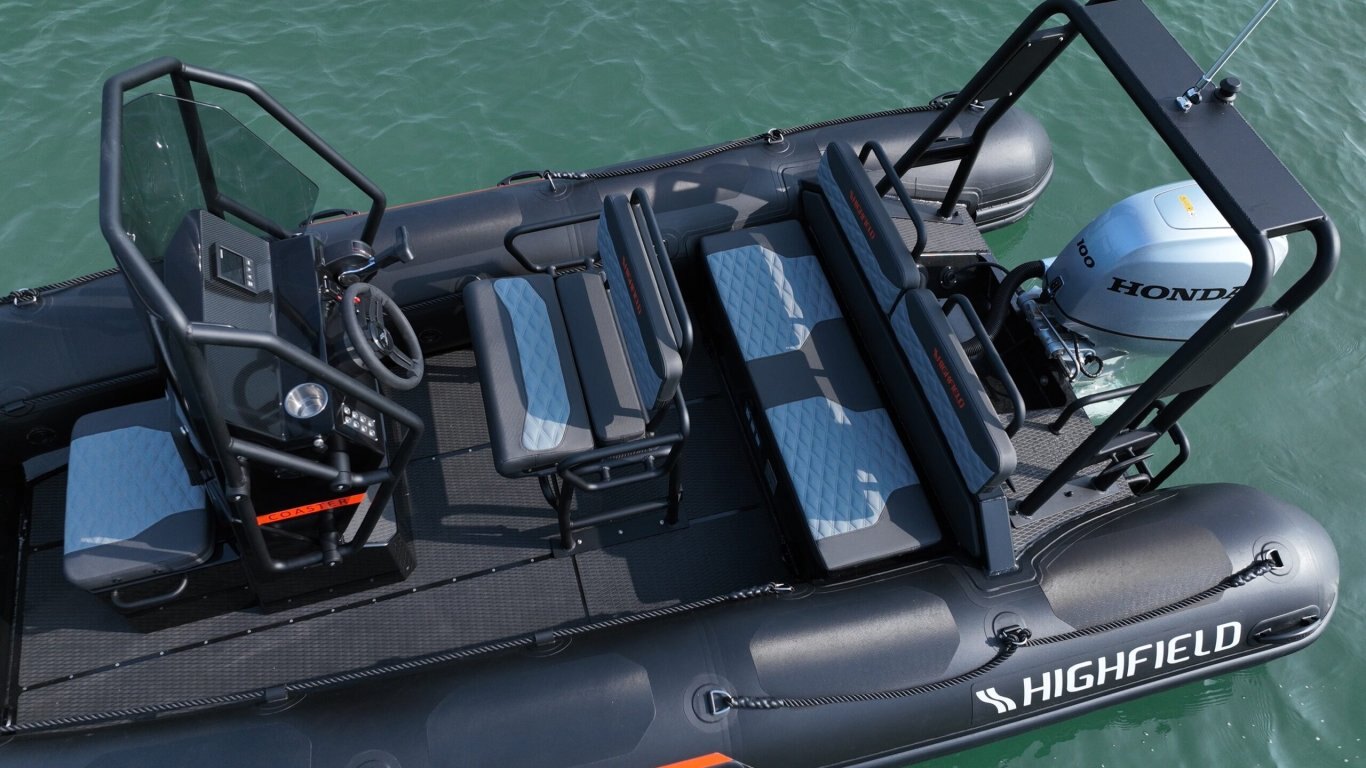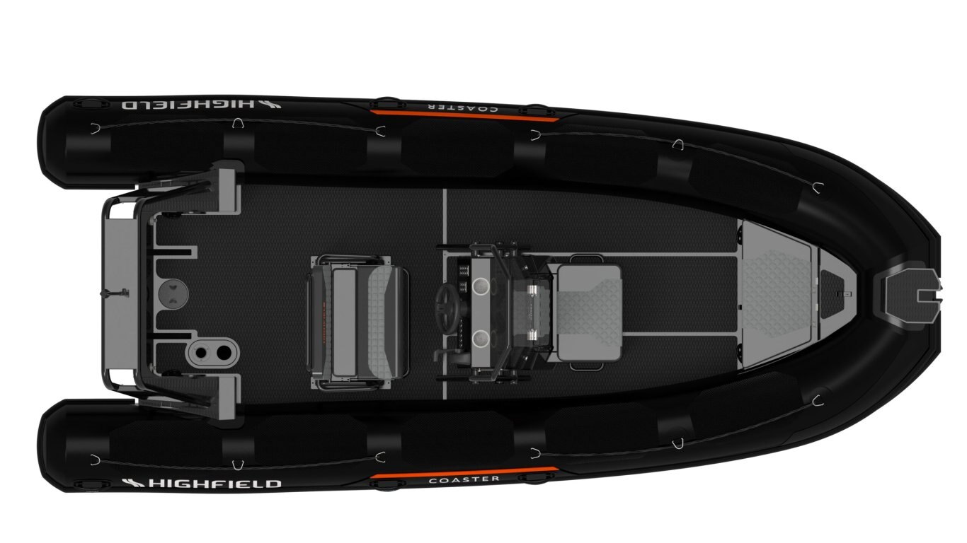 Bow Cushion Flush mount non-return valves High tensile chromated & powder coated aluminum hull Integrated transom supports Self-draining deck Steering wheel Integrated under-deck fuel tank Lifting points and towing eyes Anti-slip deck Heavy duty rubbing strake Keel guard Carbon dash Electrical pack for console Electrical pack for boat Transom ladder Bow cushion Welded seams (PVC) Highfield dry bag Foot pump, oars, repair kit Mehler PVC Tube