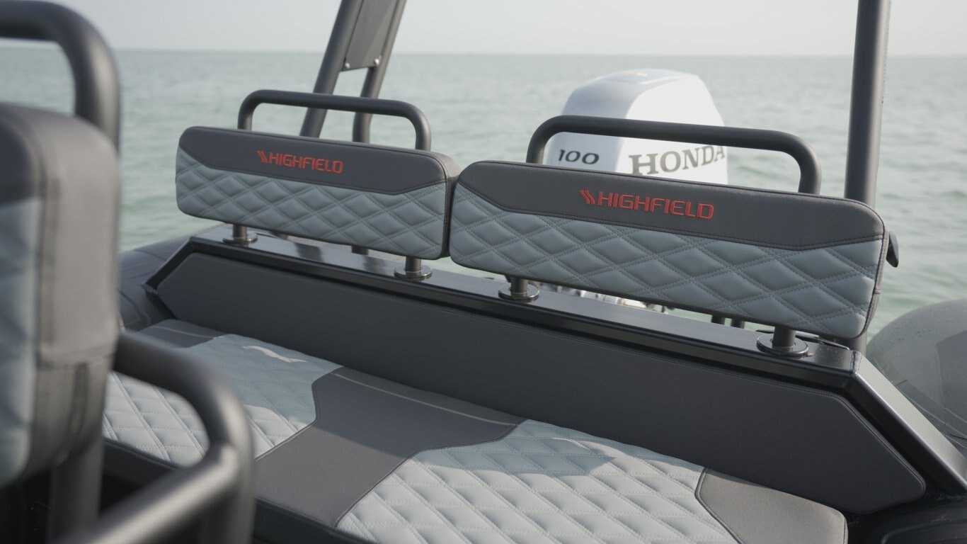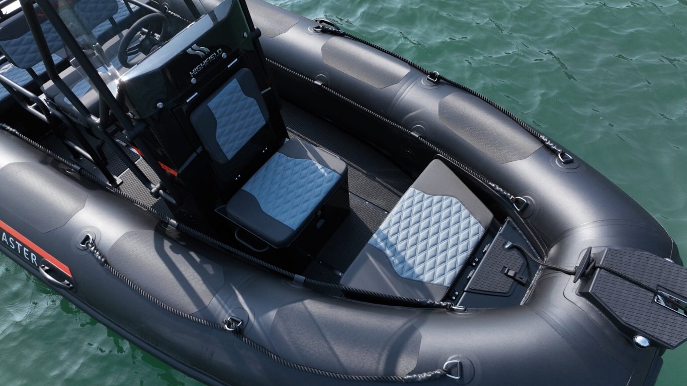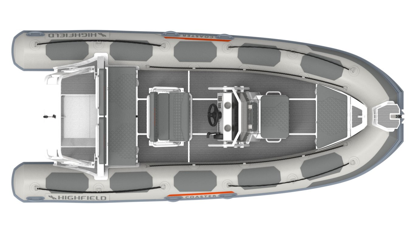 Bow Cushion Flush mount non-return valves High tensile chromated & powder coated aluminum hull Integrated transom supports Self-draining deck Steering wheel Integrated under-deck fuel tank Lifting points and towing eyes Anti-slip deck Heavy duty rubbing strake Keel guard Carbon dash Electrical pack for console Electrical pack for boat Transom ladder Bow cushion Welded seams (PVC) Highfield dry bag Foot pump, oars, repair kit Mehler PVC Tube