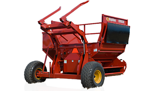 The CFR650 unrolls and processes round bales with PTO-powered flails. This process blows away mold, dust and mildew.