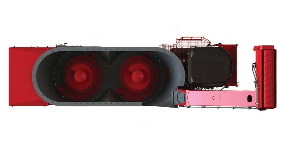 Tub-The mixing tub contains two hydraulically driven vertical screws, with three user-customized speeds, from 1-55 rpm. |
