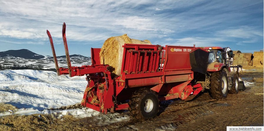 The TMR MIXER that is not a TMR Mixer (with no extra mixing time). The 1251 is a dual-chamber bale processor which offers many of the same benefits as a TMR Mixer. The 1251 provides the flexibility to process two bales at once, blending different types of forage into a healthy ration. With winter feed costs accounting for as much as 50% of total production costs, managing this variable can make or break the profitability of a cow/ calf operation. The ability to utilize lower quality forage, along with high quality forage maximizes the efficiency of a winter feeding program and is critical in extending feed supplies on years when good hay is in short supply. When equipped with the optional Grain Tank with MGITM and Feed ChopperTM, the CFR 1251 really is an all-purpose machine that rivals a TMR mixer in producing a mixed forage/grain ration. And, it does this with lower operational costs and less capital investment. The 1251 is also an excellent machine for bedding and that’s something that most TMR mixers can’t do. In many cattle operations the CFR 1251 may be a wiser investment than a TMR mixer. |