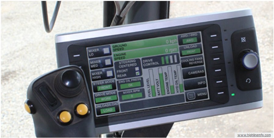 Touchscreen display and ergonomic joystick allows operators to easily control the functions of the machine. |