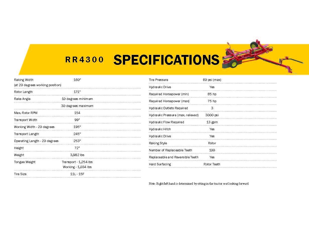 The RR4300 rock rake has an adjustable raking angle of 10 degrees to 30 degrees with up and down positioning for efficiency and convenience. The teeth of the rock rake have a hard surfaced face as well as being designed to be reversible and replaceable. ![]() |