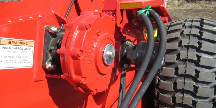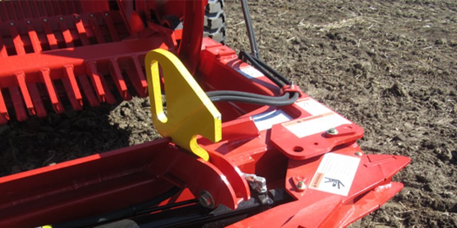 | Two Position Hitch The Highline® hitch design moves the rock picker fully into view of the operator and the entire picking width is outside the tractor tracks. The hitch also advances the rock picker to a new level of transport convenience with a self-locking hitch. The self-locking design doesn’t require any pins or wedges; when you get to the field, the transport lock is required to be opened manually, returning to transport position engages the lock.