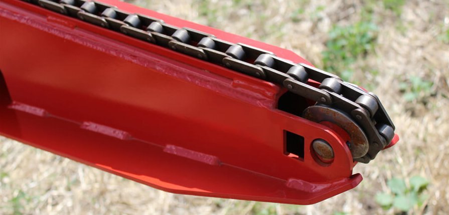 • From the cab of the tractor, the deck is lifted hydraulically. The bale chains transfer the bales onto the ground without ripping twine or damaging the bales.The tail of the Bale Mover is designed to skid over the ground during the unloading process without damage.