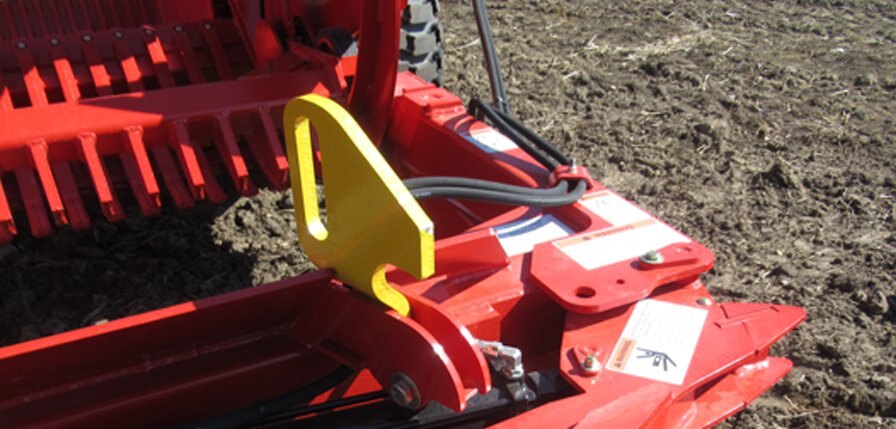 The Highline® hitch design moves the rock picker fully into view of the operator and the entire picking width is outside the tractor tracks. The hitch also advances the rock picker to a new level of transport convenience with a self-locking hitch. The self-locking design doesn’t require any pins or wedges; when you get to the field, the transport lock is required to be opened manually, returning to transport position engages the lock.