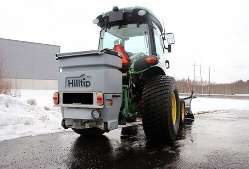 The tailgate salt spreader is operated wirelessly (Bluetooth) with the Hilltip StrikeSmart™ control App. The smartphone is with control app installed and included with the spreader. GPS-speed control adjusts the amount of spreading material in g/m², according to your vehicle speed. While manual control mode lets you insert a fixed auger speed. Tracking with Hilltip HTrack™ is an standard function.