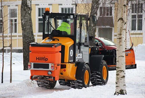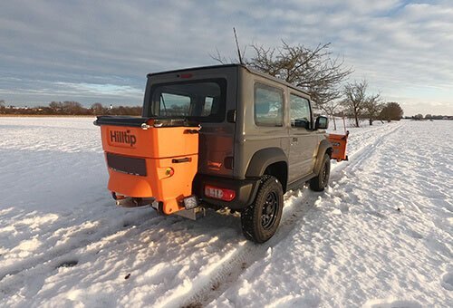 The tailgate salt spreader is operated wirelessly (Bluetooth) with the Hilltip StrikeSmart™ control App. The smartphone is with control app installed and included with the spreader. GPS-speed control adjusts the amount of spreading material in g/m², according to your vehicle speed. While manual control mode lets you insert a fixed auger speed. Tracking with Hilltip HTrack™ is an standard function.