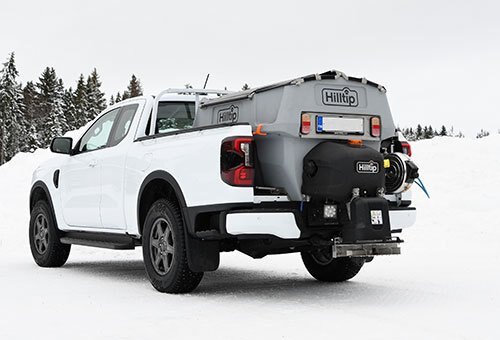The Hilltip IceStriker™ 12V electric salt and sand spreaders are designed to fulfill the requirements of the European pickup and light truck segment. Whether you need a small salt spreader for a pickup truck or a high-capacity sander, we have you covered. The lightweight hopper body made of HD polyethylene and mounted parts in stainless steel provide long-lasting protection against corrosion and rust. With our unique HTrack™ control & tracking system, the IceStriker™ is the best salt spreader for pickup trucks. It helps you save money and reduce the environmental impact while achieving efficient results.The Hilltip IceStriker™ 12V electric salt and sand spreaders are designed to fulfill the requirements of the European pickup and light truck segment. Whether you need a small salt spreader for a pickup truck or a high-capacity sander, we have you covered. The lightweight hopper body made of HD polyethylene and mounted parts in stainless steel provide long-lasting protection against corrosion and rust. With our unique HTrack™ control & tracking system, the IceStriker™ is the best salt spreader for pickup trucks. It helps you save money and reduce the environmental impact while achieving efficient results.