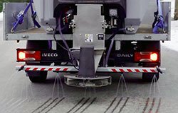 The IceStriker™ truck-mounted spreader is versatile, and it can easily be transformed into a complete liquid de-icing spreader or into a pre-wet combi salt spreader. Its integrated double-walled tanks can store up to 1,400 litres of liquid. This salt and sand spreader for trucks can be equipped with a 2-metre spray bar and a hose reel with a handheld spray nozzle. The IceStriker™ 2,600-7,000 litre spreaders can be equipped with additional liquid tanks ( 1000 l/tank) for added capacity.