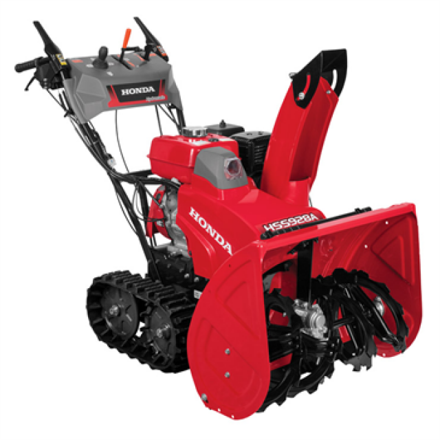 Honda’s dual stage, track drive HSS928ACT snowblower features technologies for performance, ease-of-use and durability. Powered by the latest Honda GX270T2 commercial grade OHV (overhead valve) engine, the HSS928ACT clears a path 71 cm (28 in.) wide and 55.0 cm (21.7 in) hight, and moves up to 52 metric tons (57 tons) of snow per hour with a discharge distance up to 16 metres (52.5 ft.). The variable speed hydrostatic transmission features a single lever for quick switching between forward and reverse, and for accurate adjustment of ground speed without affecting auger rotation speed, while the steering assist drive system improves manoeuvrability with or without engine running with the new fingertip trigger steering control allowing precise turns for unmatched on-the-fly steering. The hydraulic-assist auger height adjustment control allows on-the-fly adjustment of auger height for optimum performance in varying snow conditions. It comes with a 3 year residential/commercial warranty, it's certified to meet or exceed EPA emissions guidelines Additional Features: