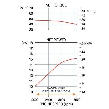 20.8 hp (15.5 kW) @ 3,600 rpm